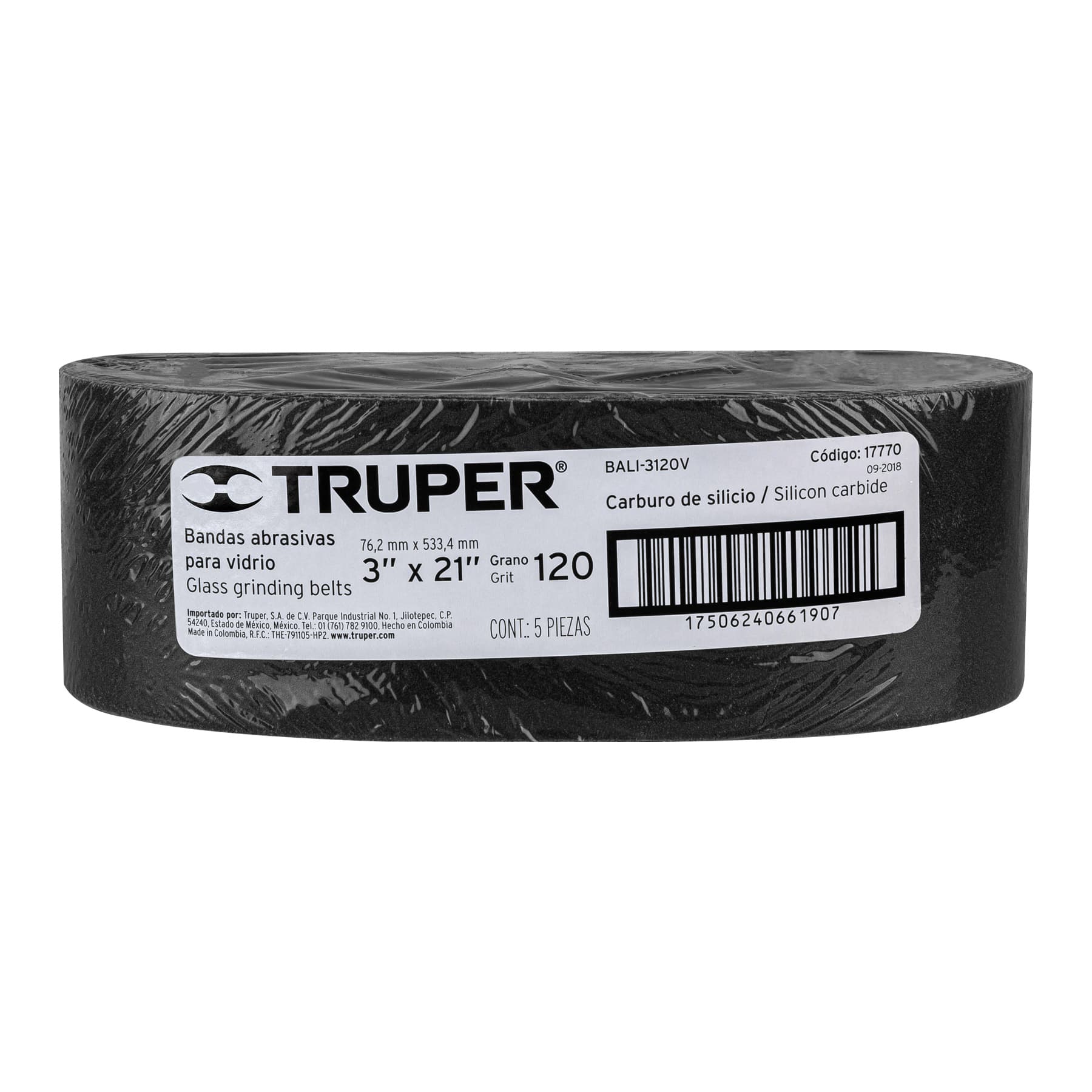 1 banda de lija 3 x 21′ p/vidrio grano 120 en paquete de 5