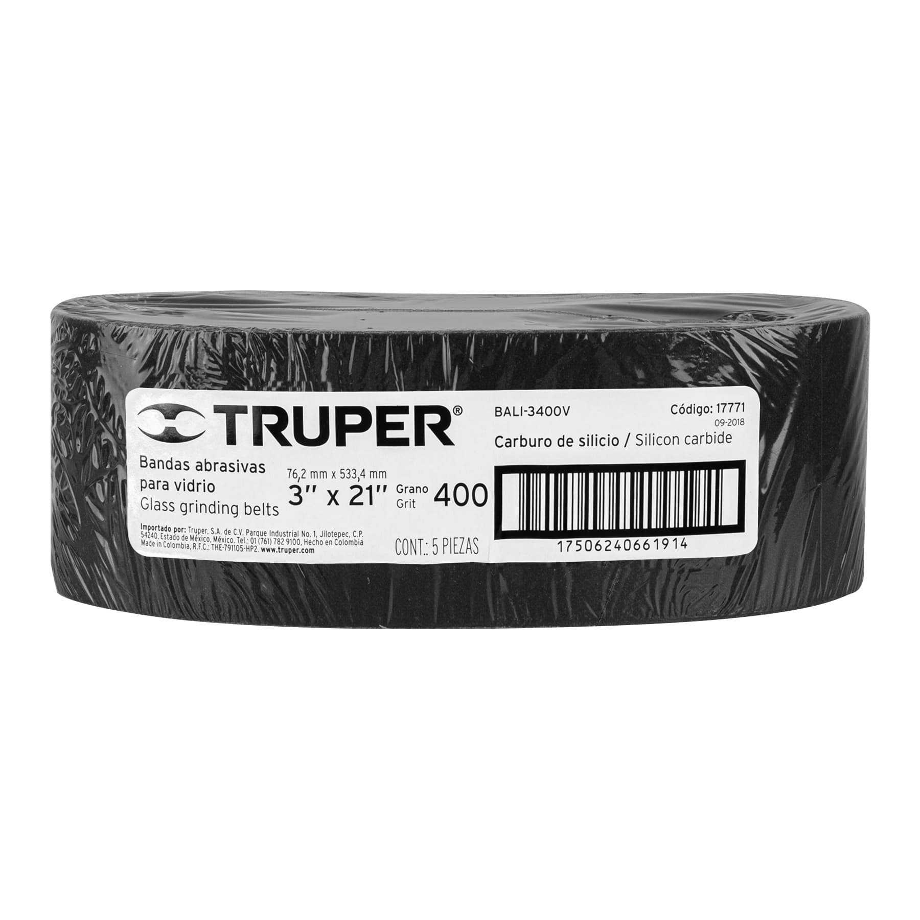 1 banda de lija 3 x 21′ p/vidrio grano 400 en paquete de 5