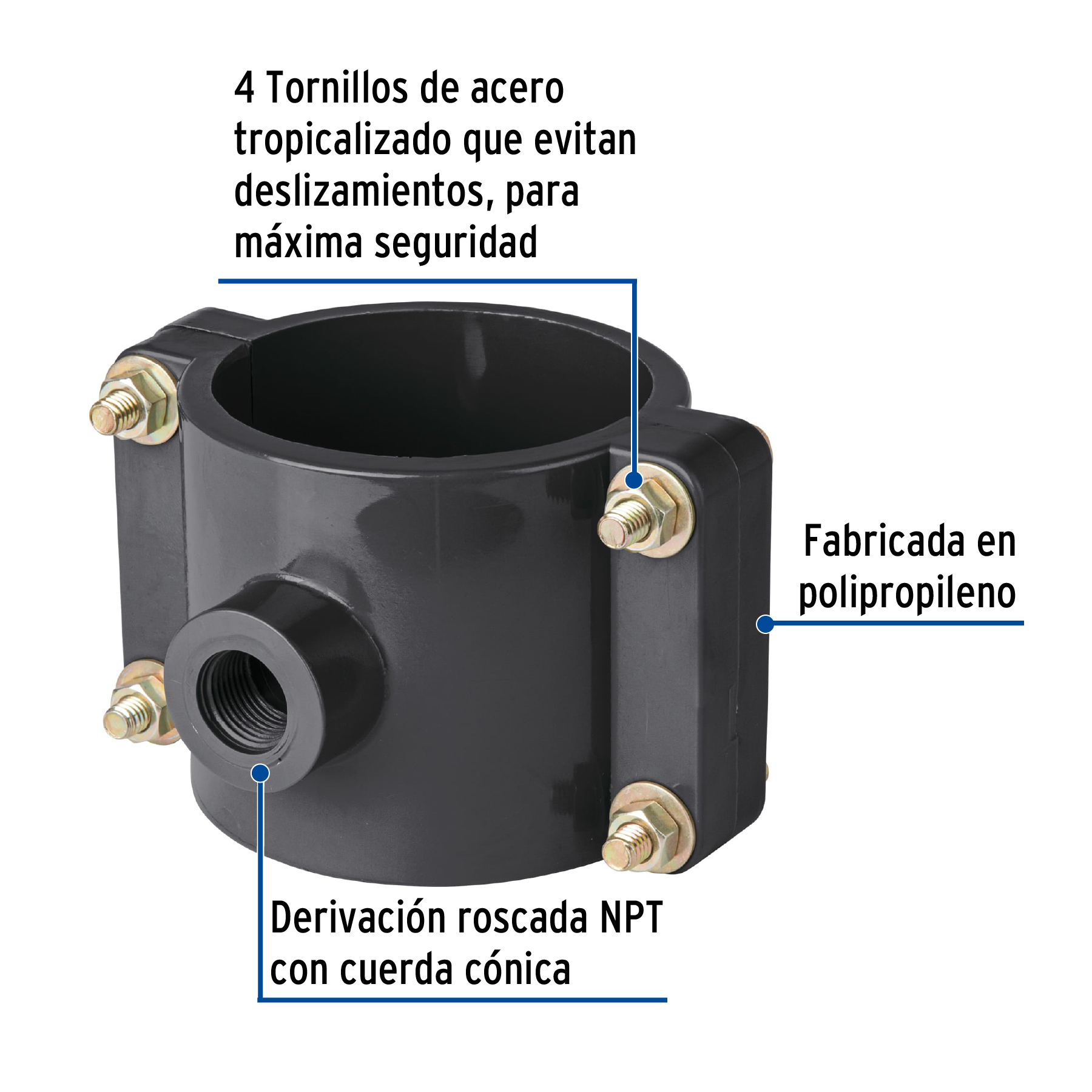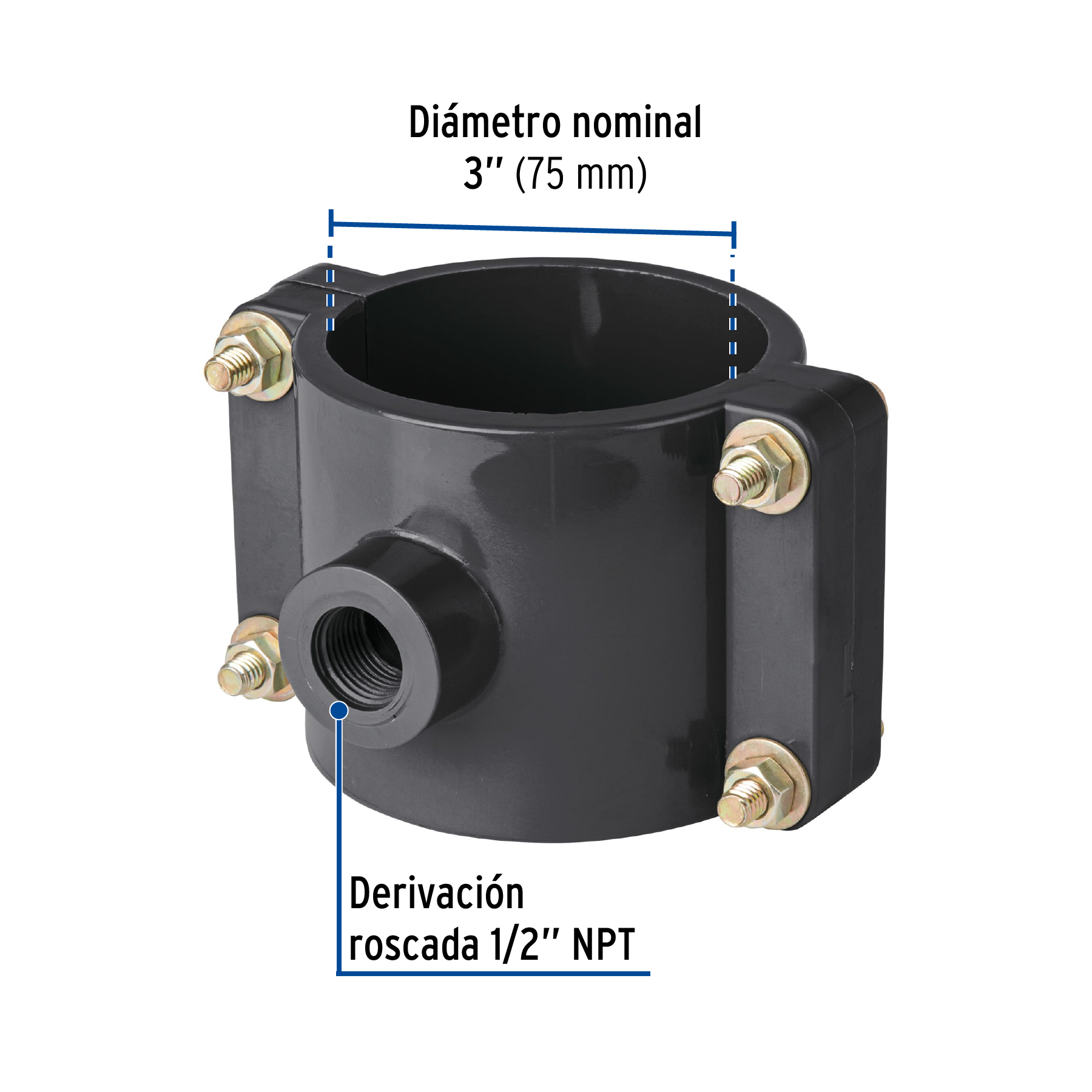 Abrazadera para toma domiciliaria PP 3′ x 1/2′, Foset
