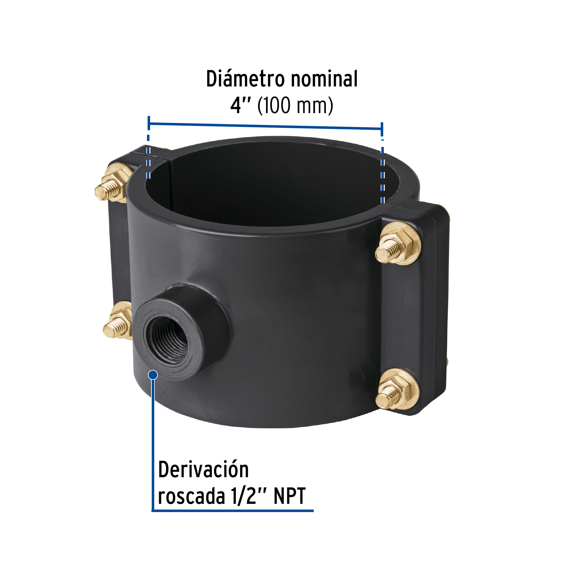 Abrazadera para toma domiciliaria PP 4′ x 1/2′, Foset