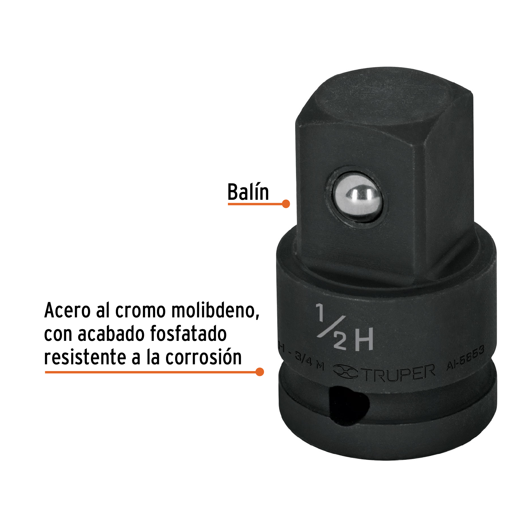 Adaptador de impacto 1/2′ (H) x 3/4′ (M), Truper