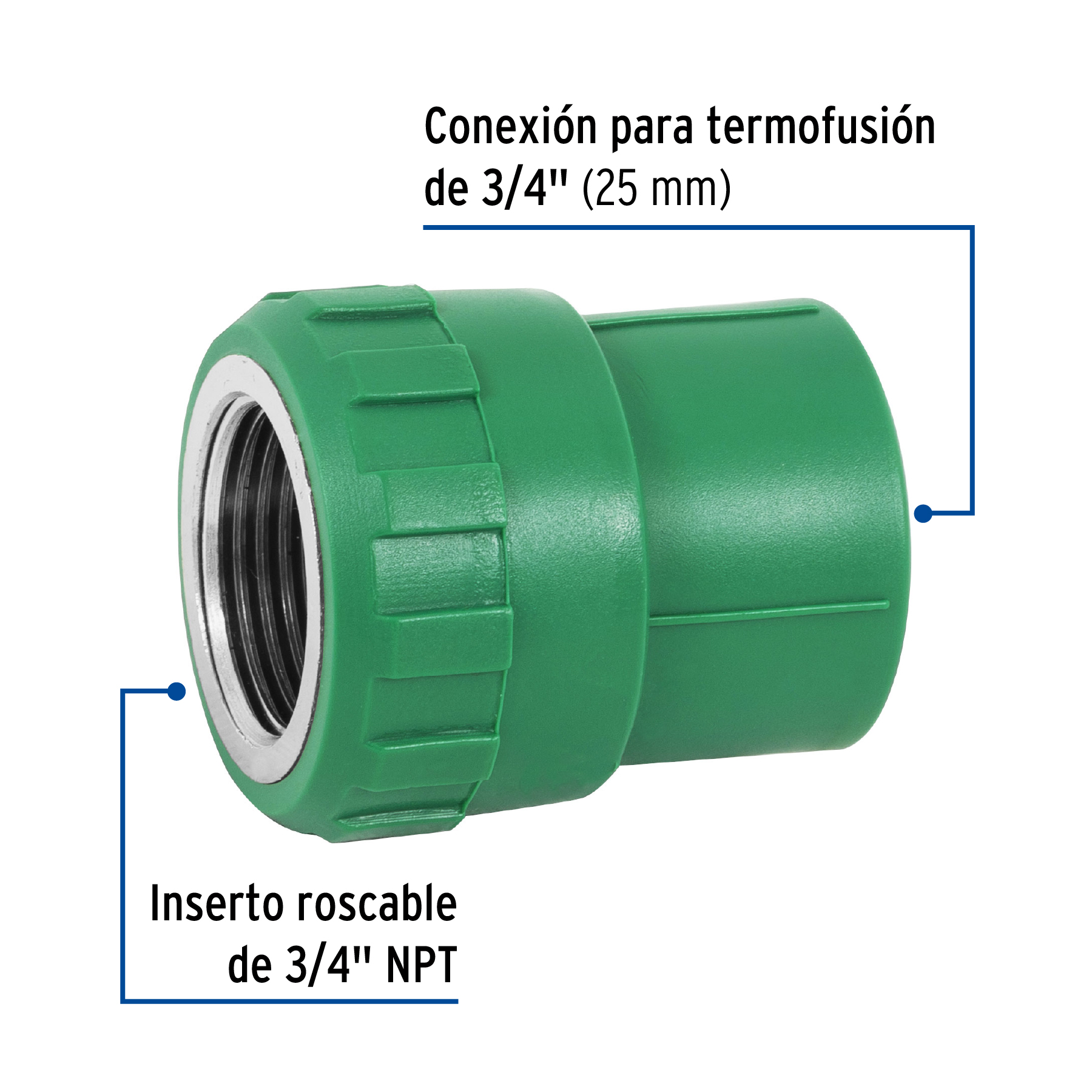 Adaptador PPR 3/4′ hembra con inserto metálico, Foset