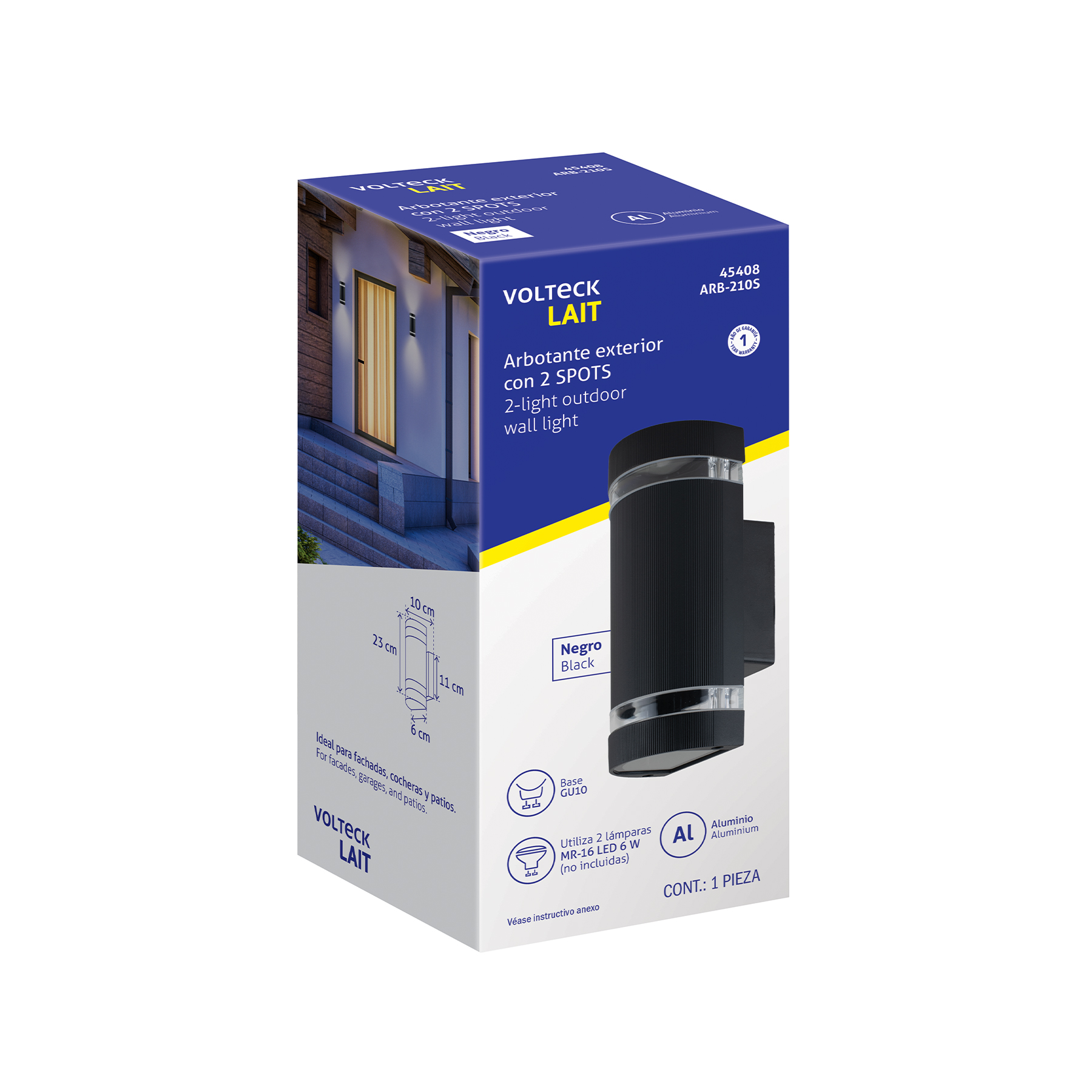 Arbotante exterior con 2 spots, lámparas no incluidas, negro