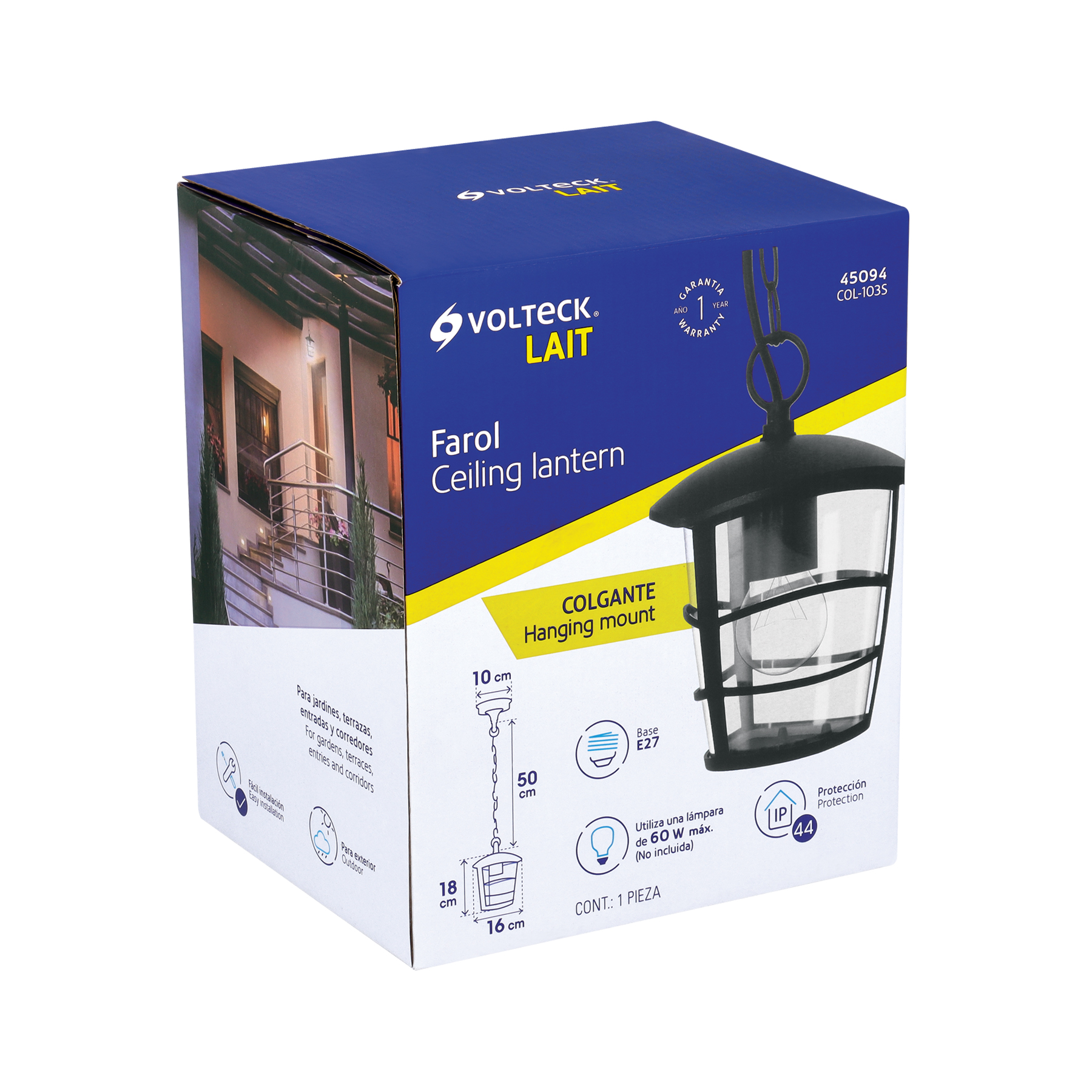 Sé el primero en valorar “Arbotante tipo farol moderno colgante para exteriores, negro”