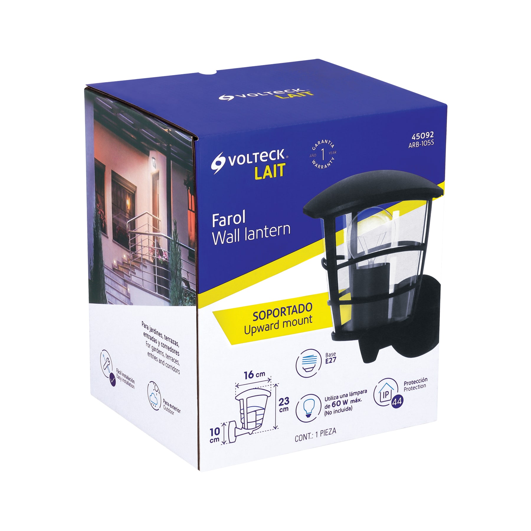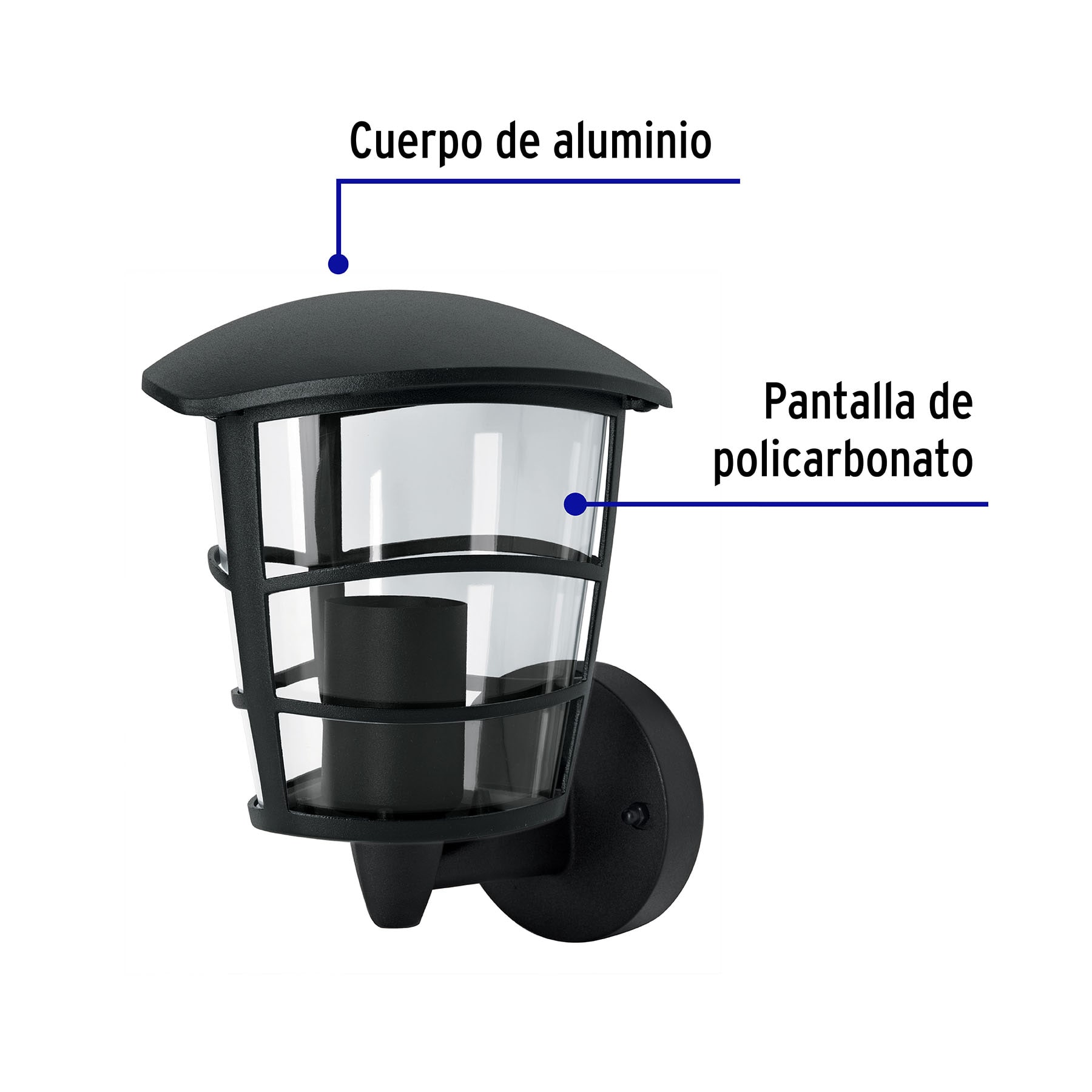 Arbotante tipo farol moderno soportado p/exteriores, negro