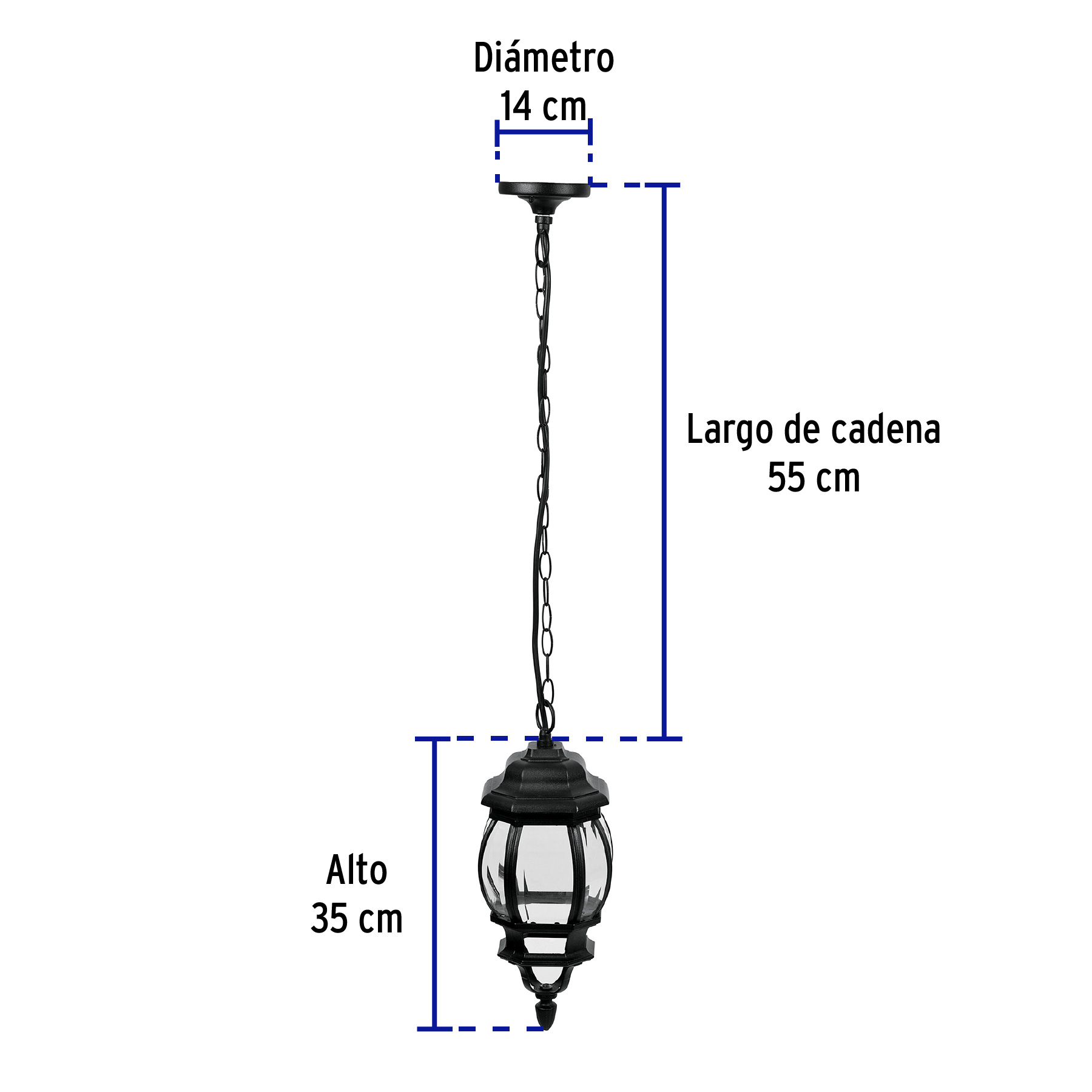 Arbotante tipo farol tradicional colgante p/exterior, negro