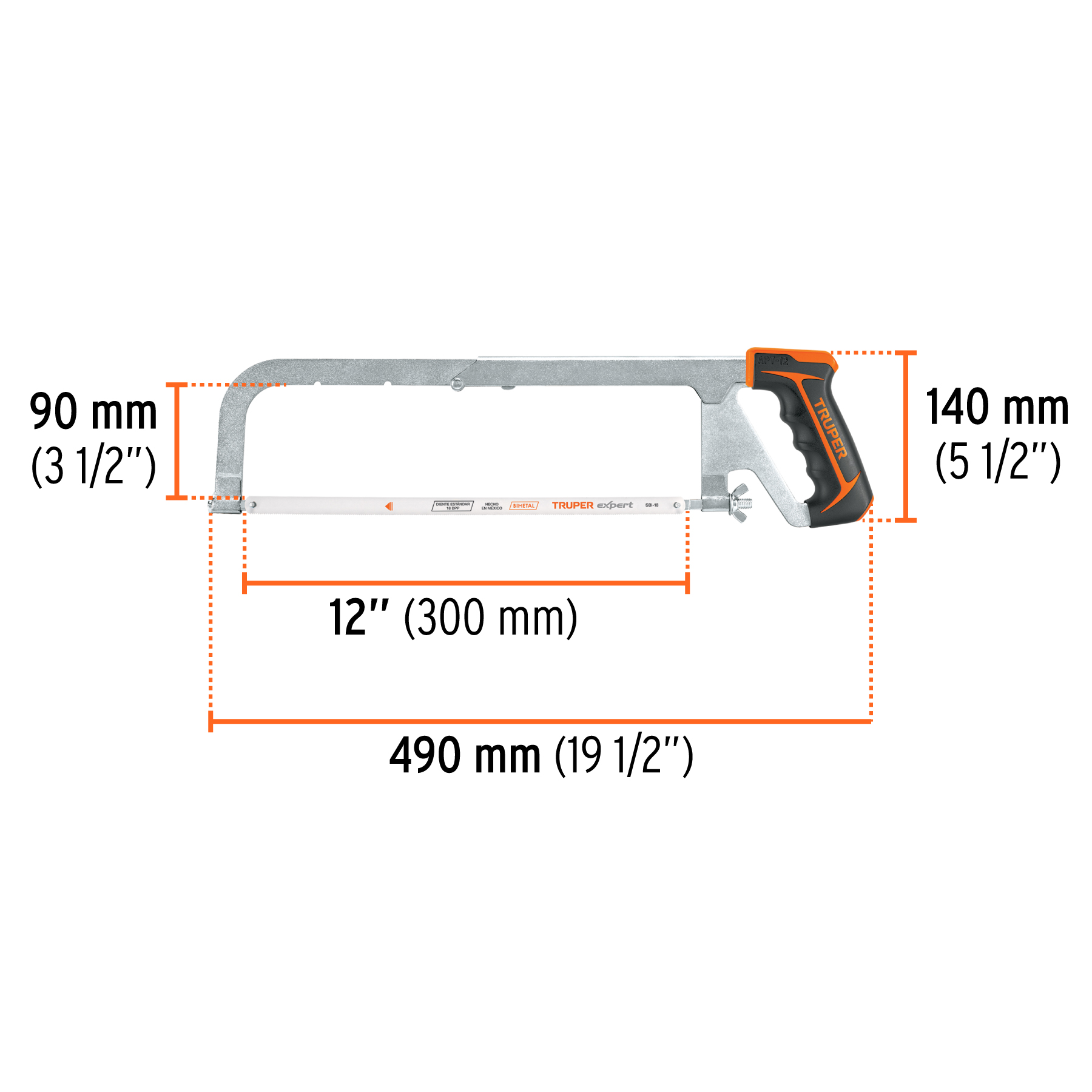Dos posiciones de segueta para cortar a 90° y 180° Marco ajustable para seguetas de 8 1/2″, 10″ y 12″