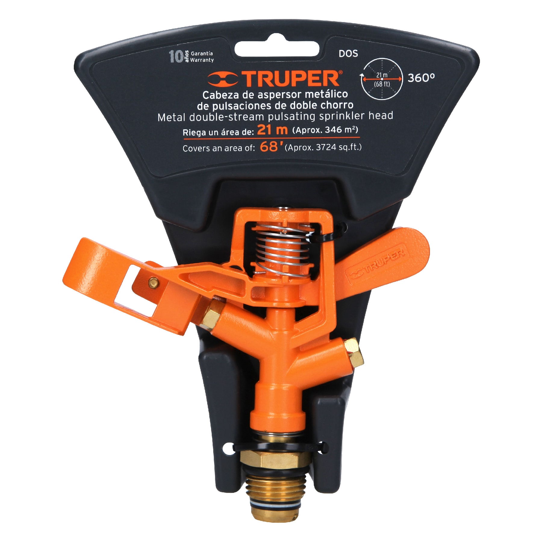 Aspersor metálico doble chorro, cabeza sola, TRUPER