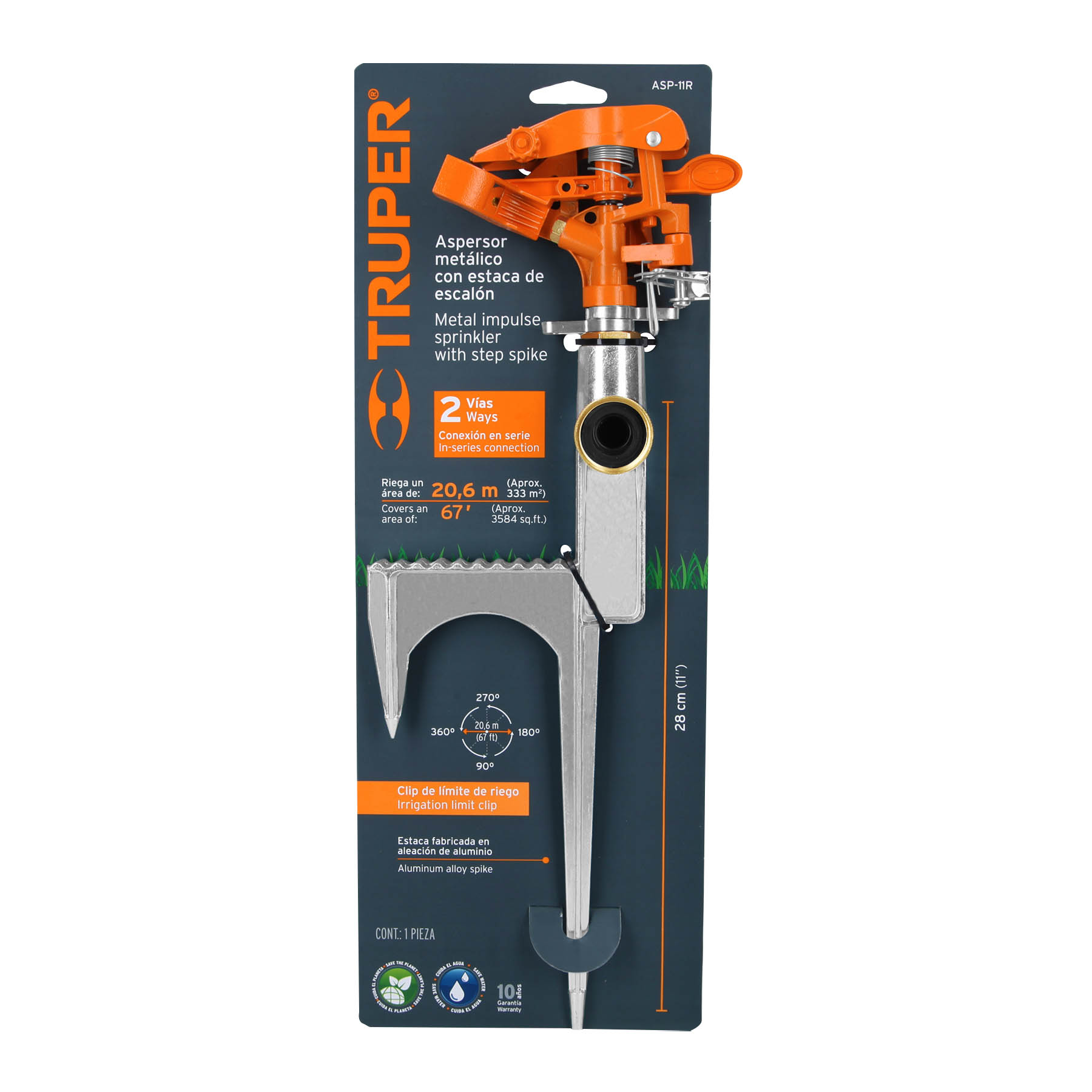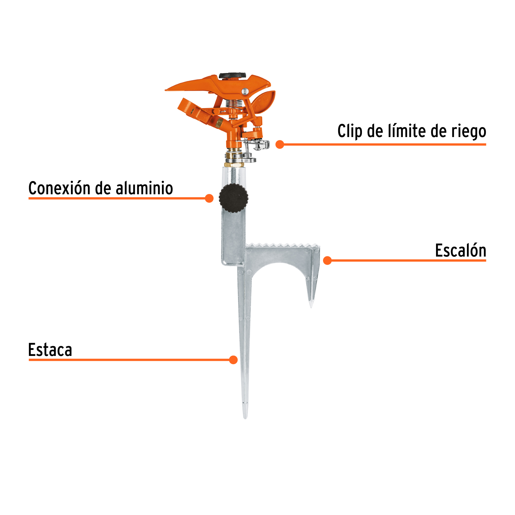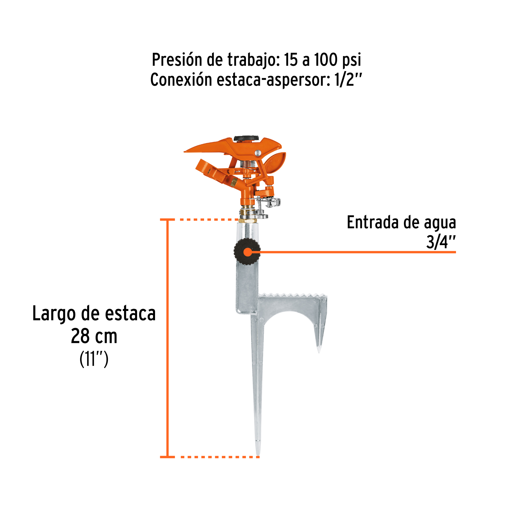 Aspersor metálico 14′ dos vías, reforzado, estaca de escalón