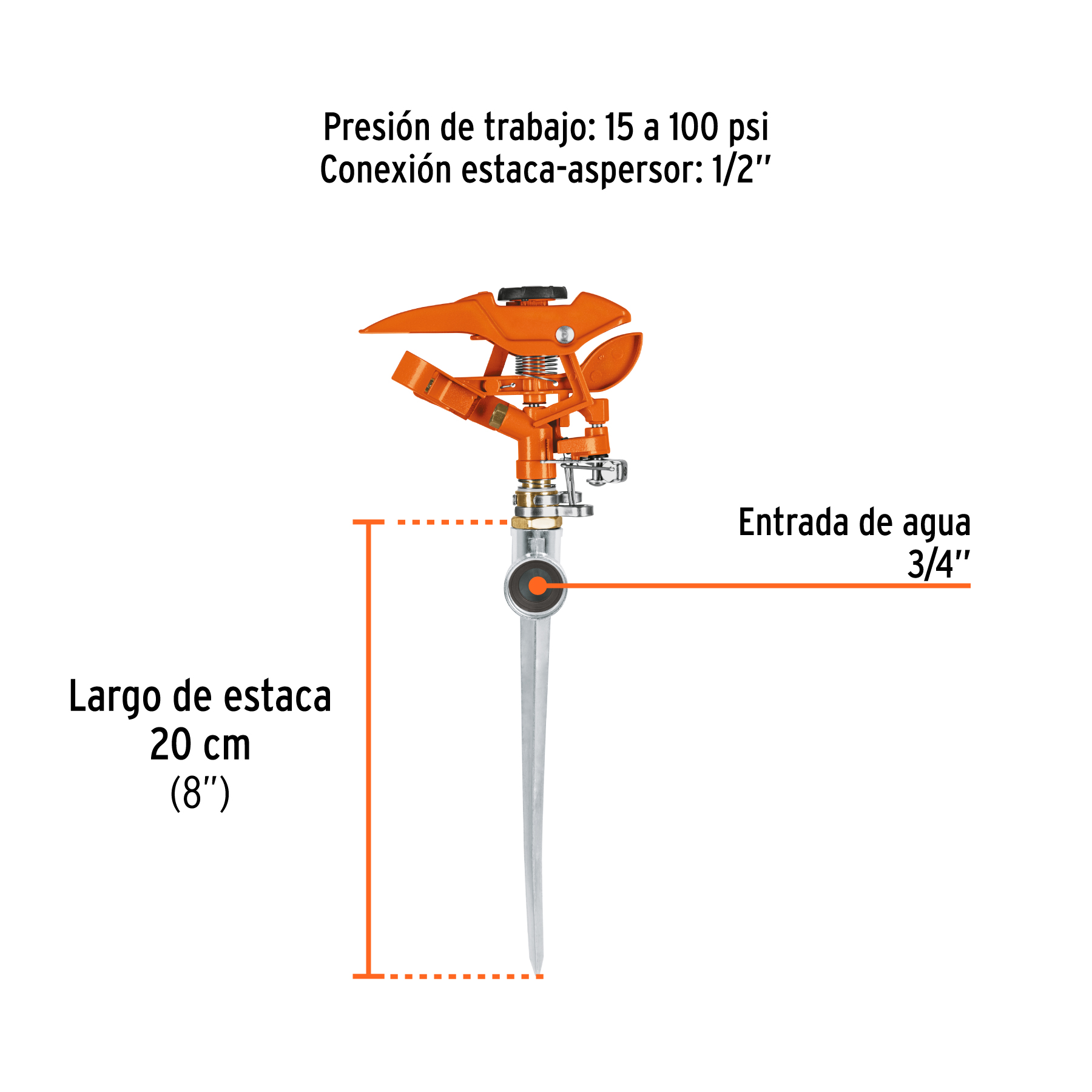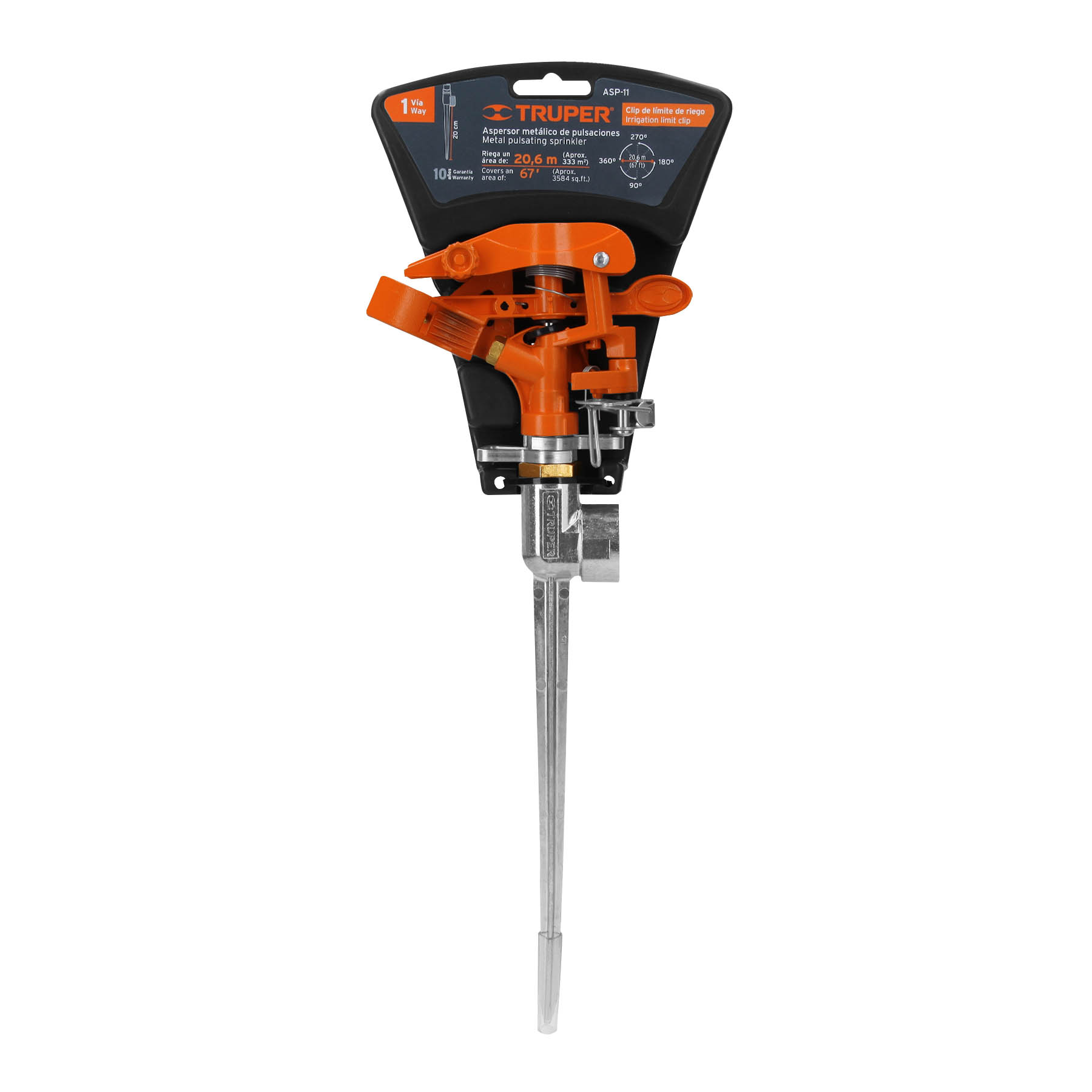 Aspersor metálico 11′ una vía, estaca metálica, TRUPER