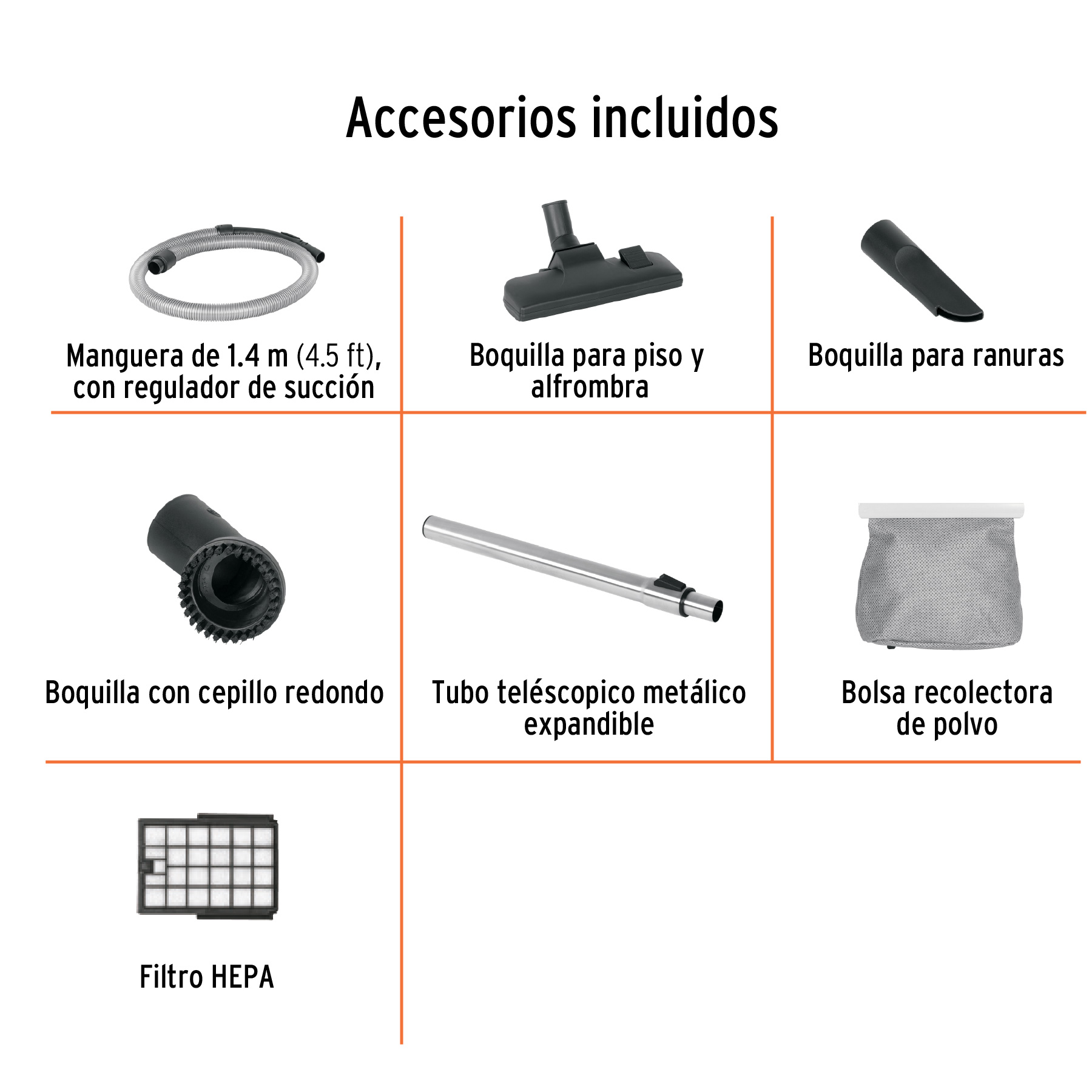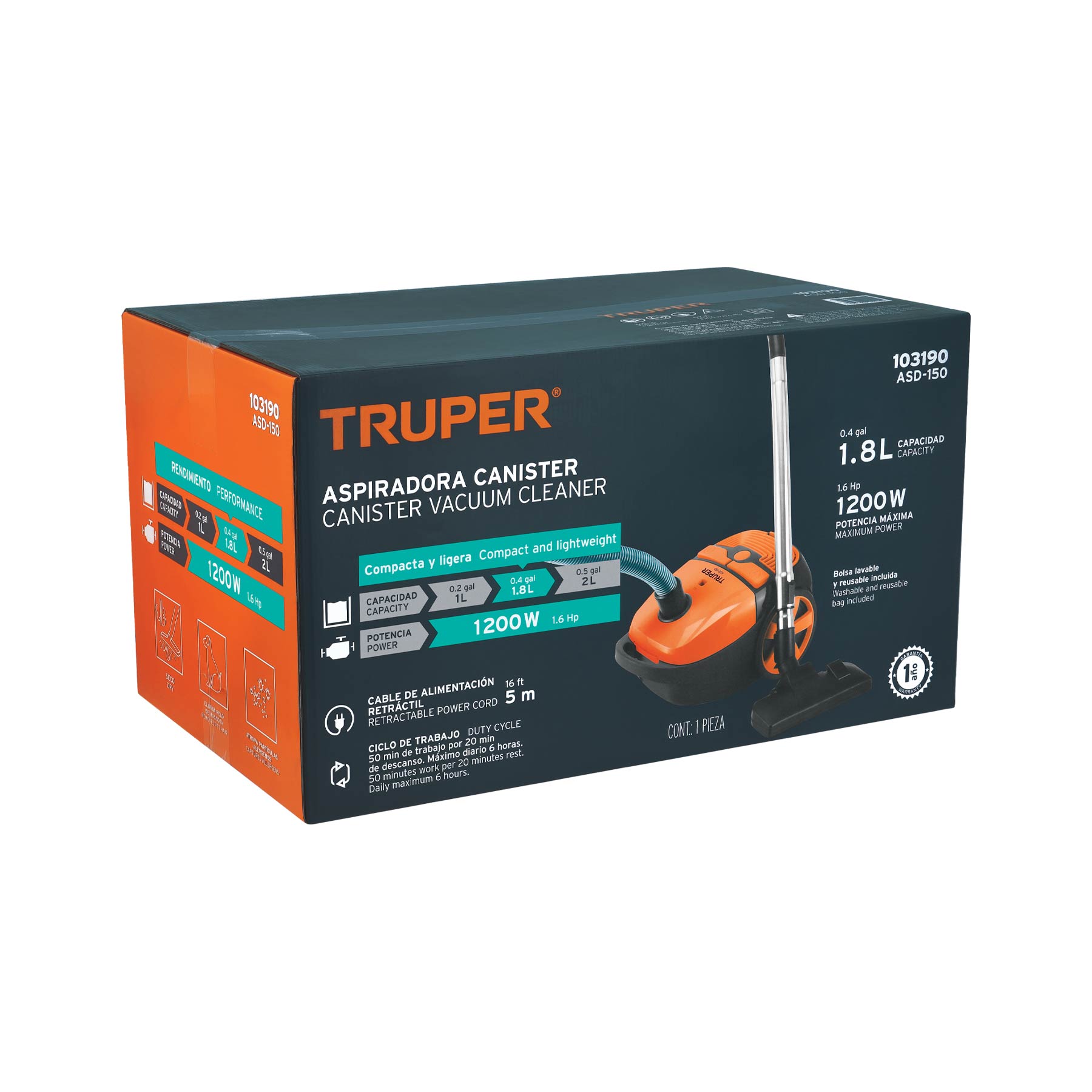 Aspiradora canister 1.8 L (0.4 gal),1,200 W (1.6 Hp), TRUPER