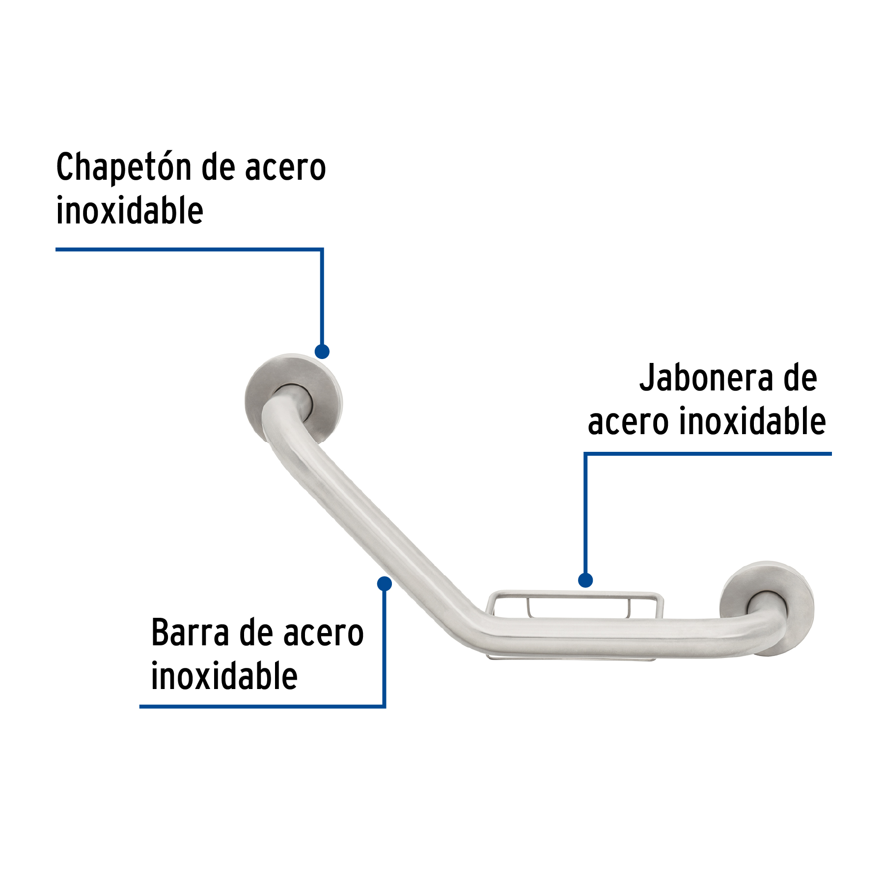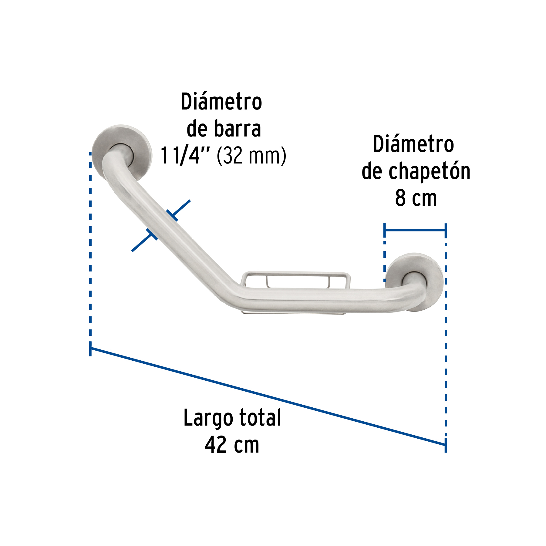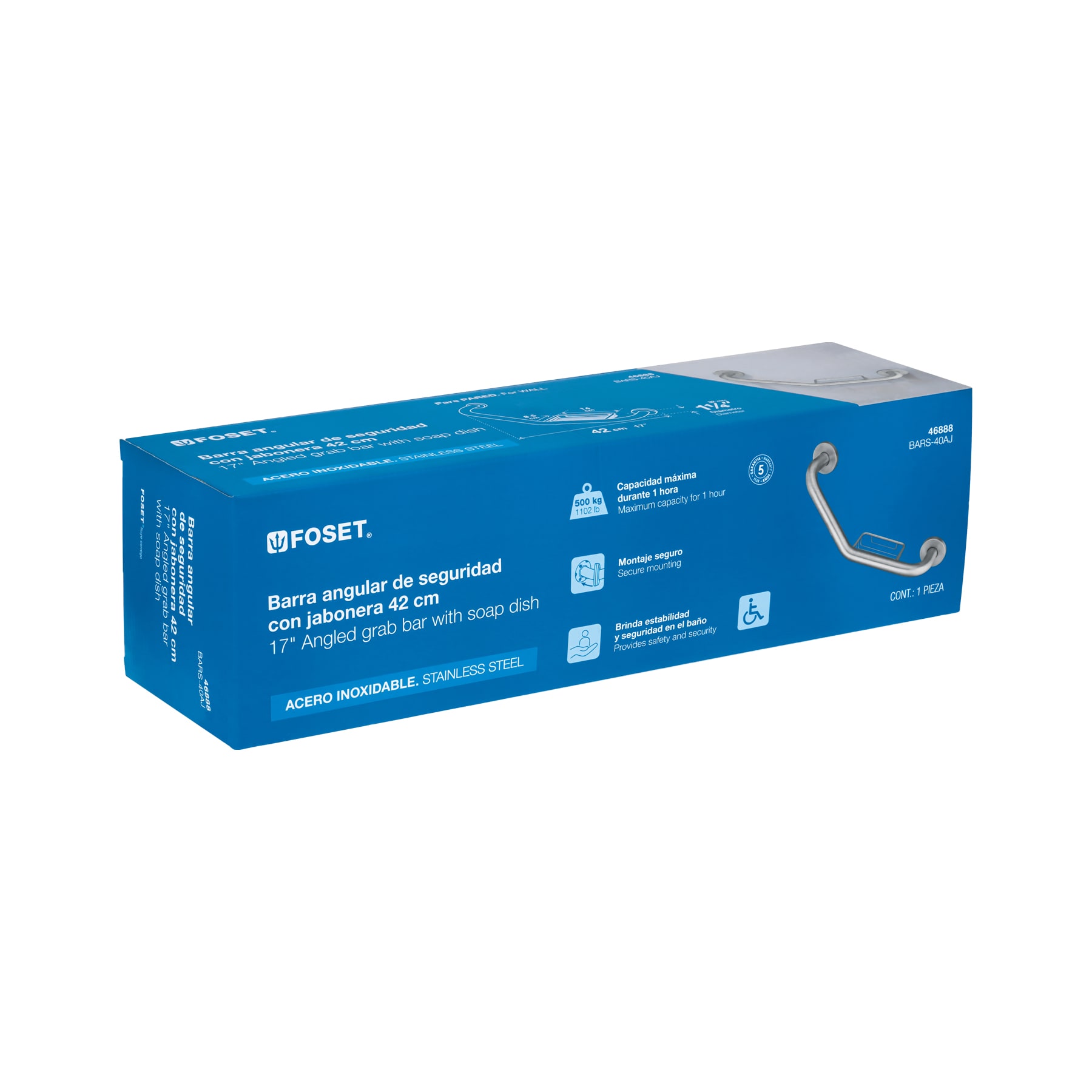 Barra angular con jabonera, acero inox, 1-1/4′ x 42cm, FOSET