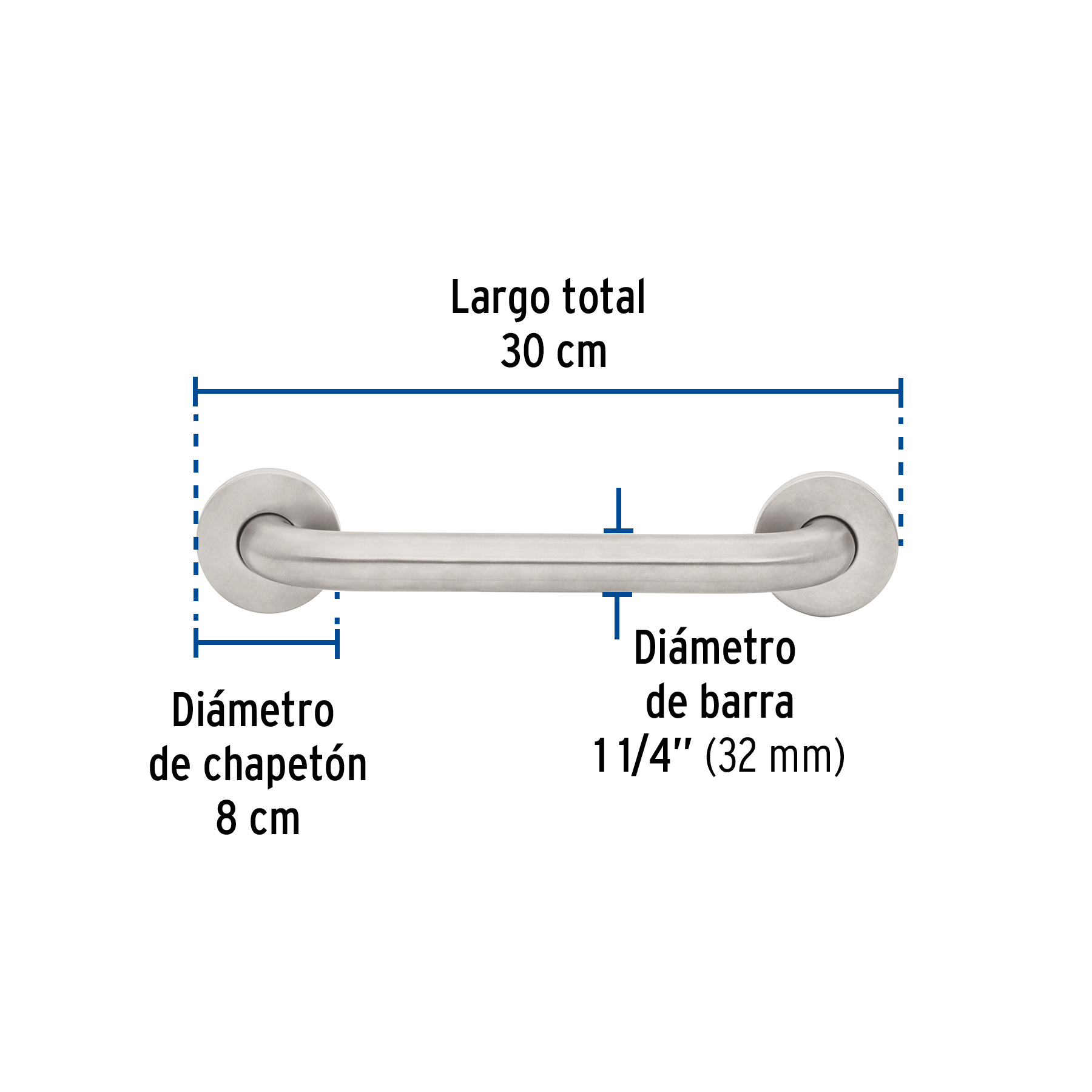 Barra recta de seguridad, acero inox, 1-1/4′ x 30cm, FOSET