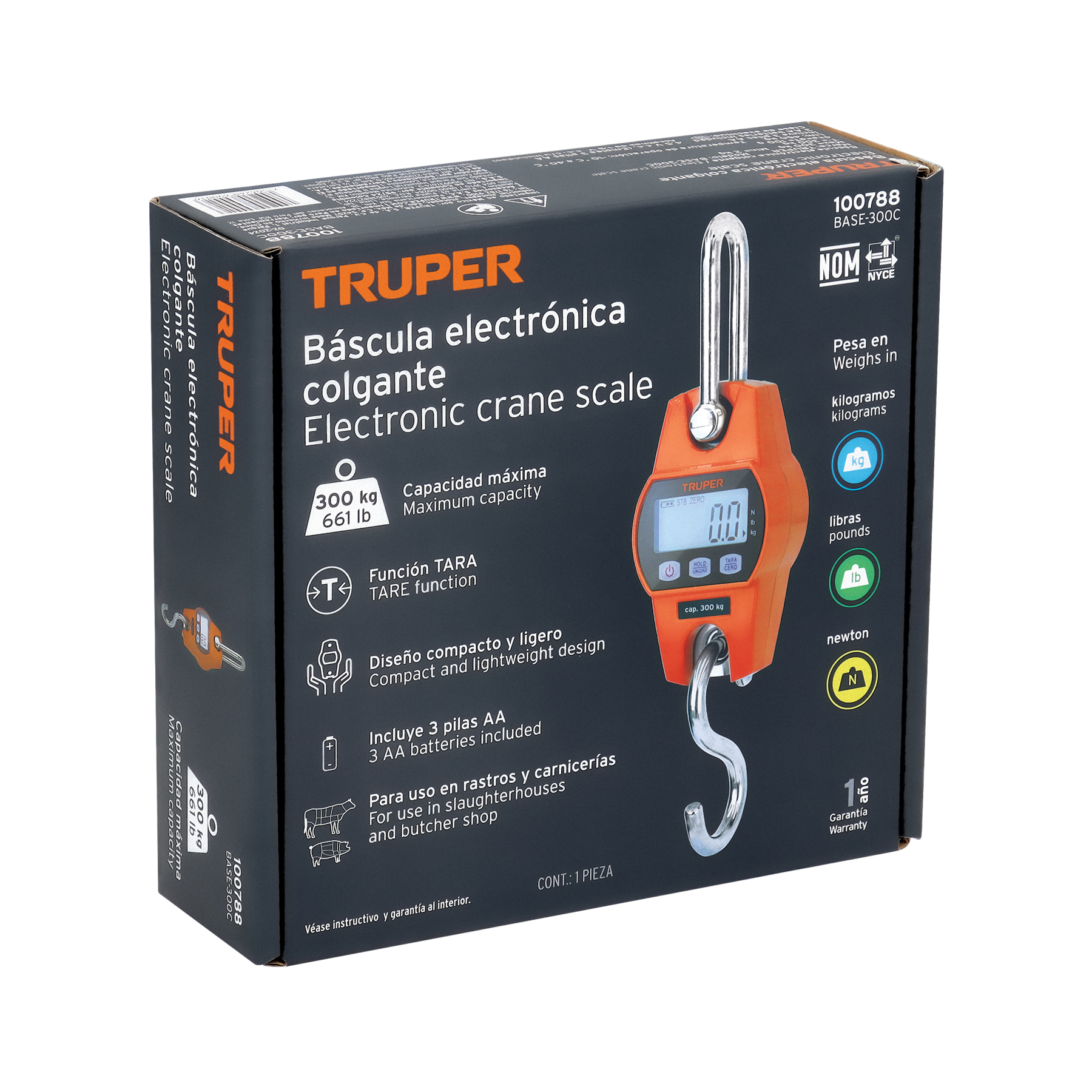 Báscula electrónica colgante, de pilas, 300 kg, Truper