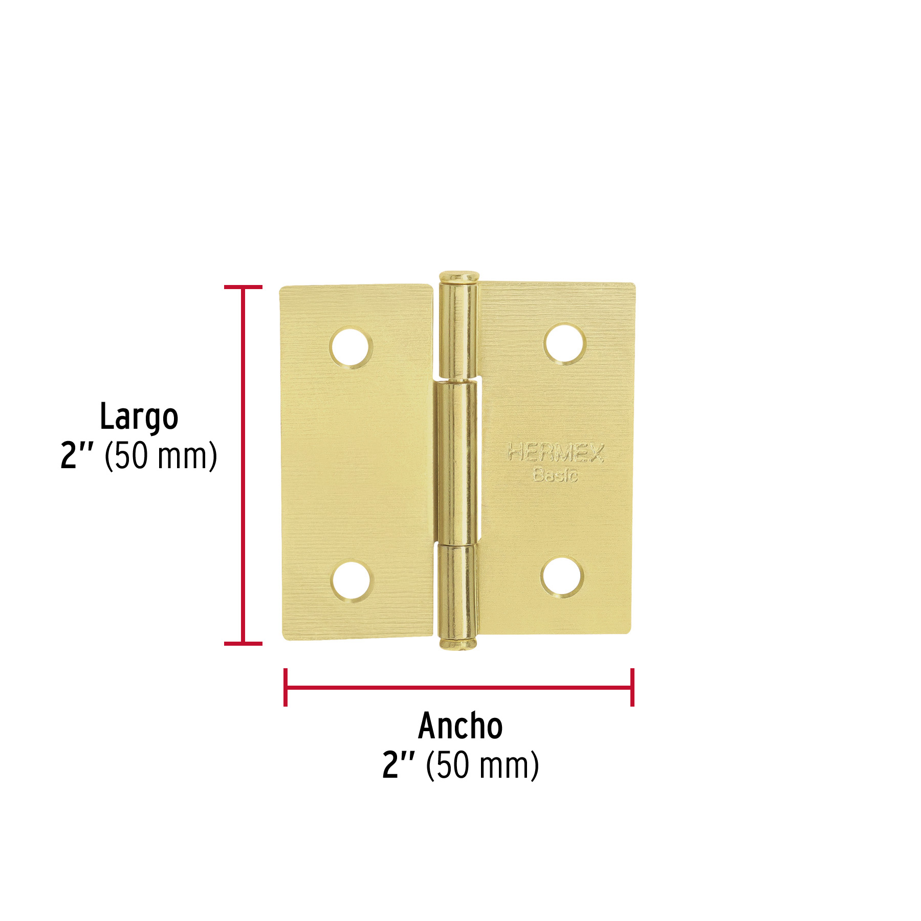 Bisagra cuadrada 2′, latonado, cabeza plana, HERMEX BASIC