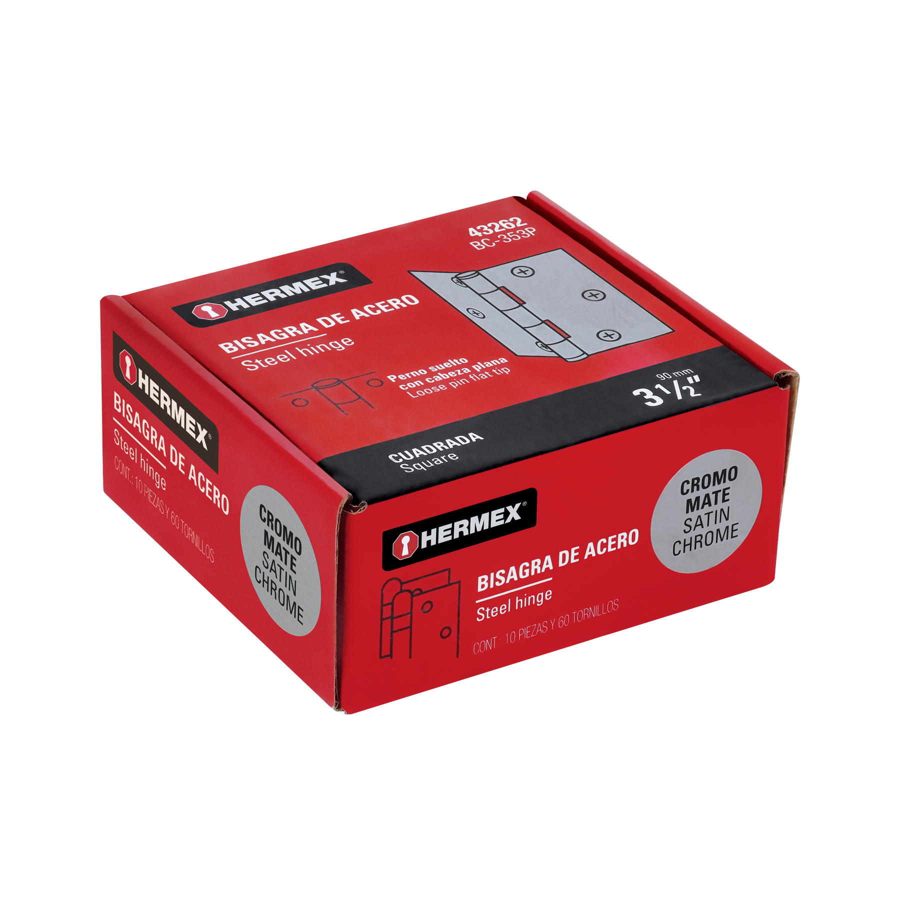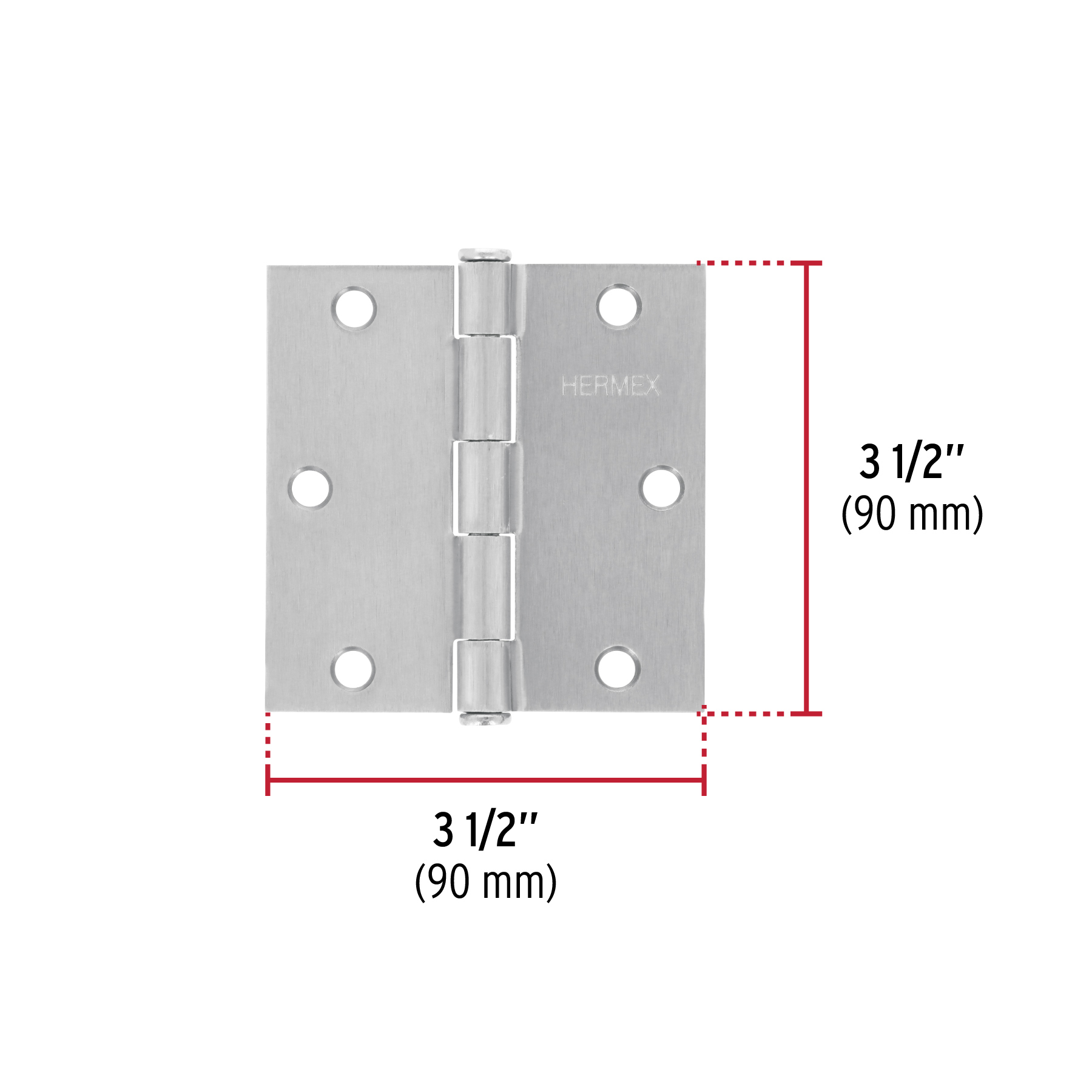 Bisagra cuadrada 3-1/2′, satinado, cabeza plana, HERMEX