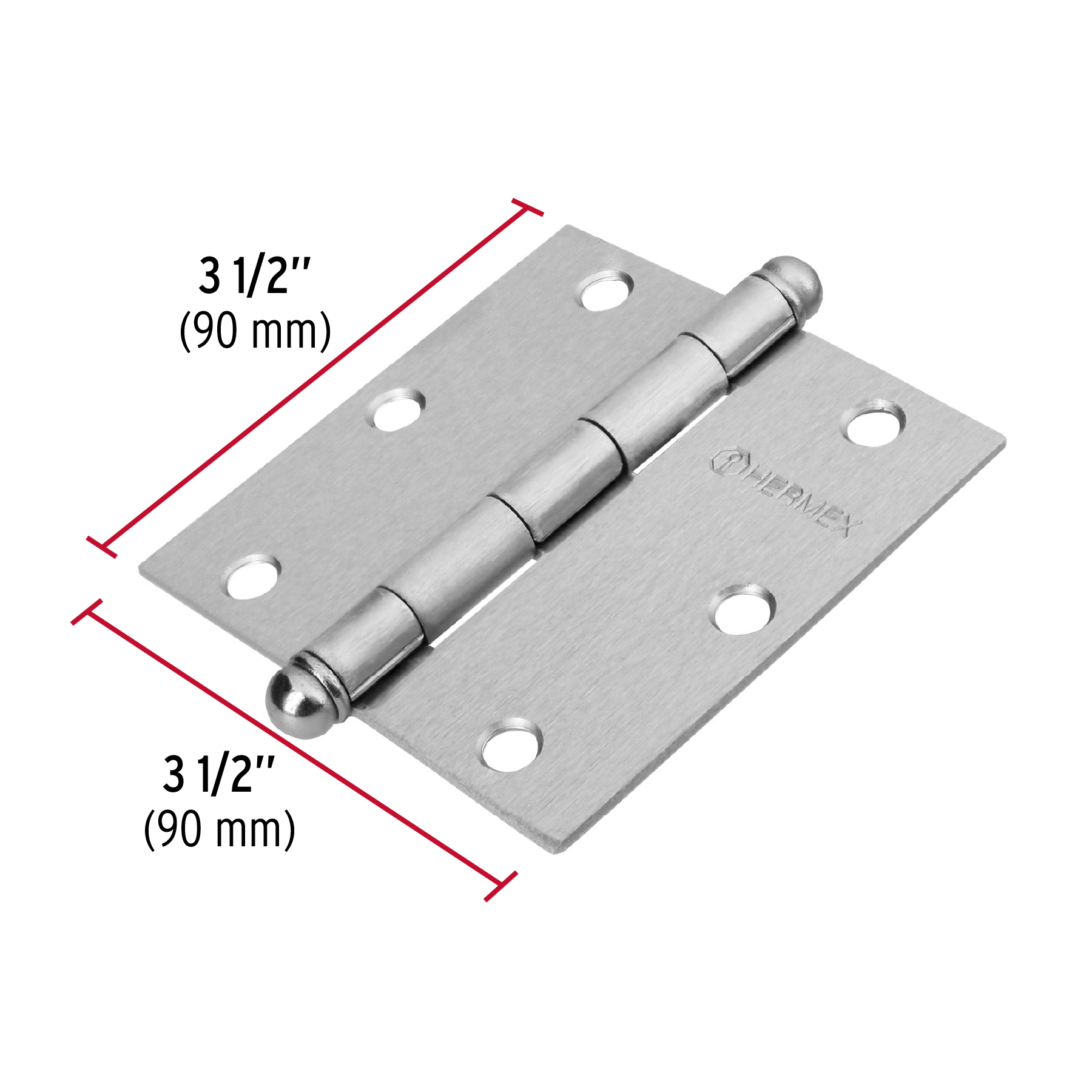 Bisagra cuadrada 3-1/2′, satinado, cabeza redonda, HERMEX