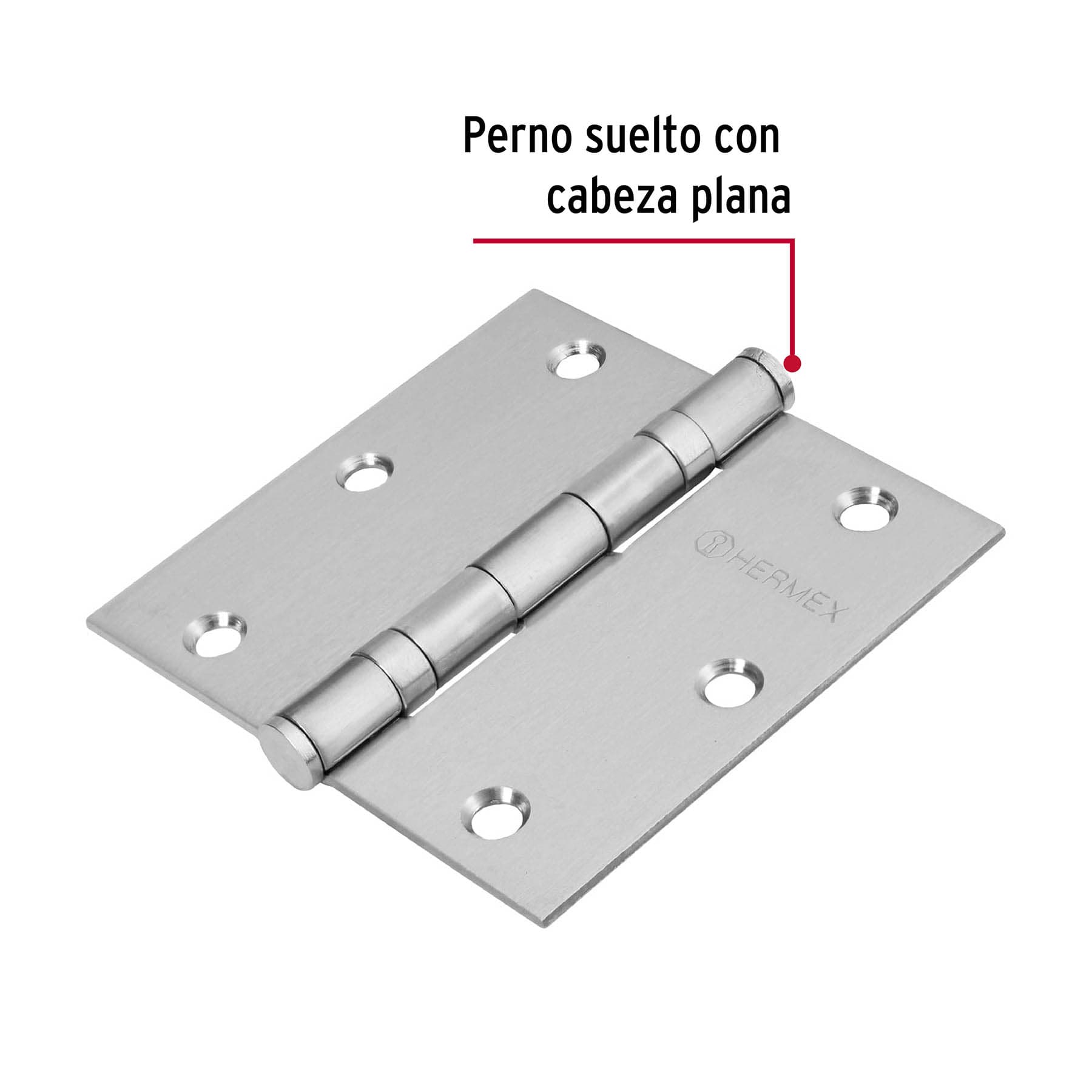 Bisagra cuadrada 3-1/2′ acero inox, cabeza plana, HERMEX