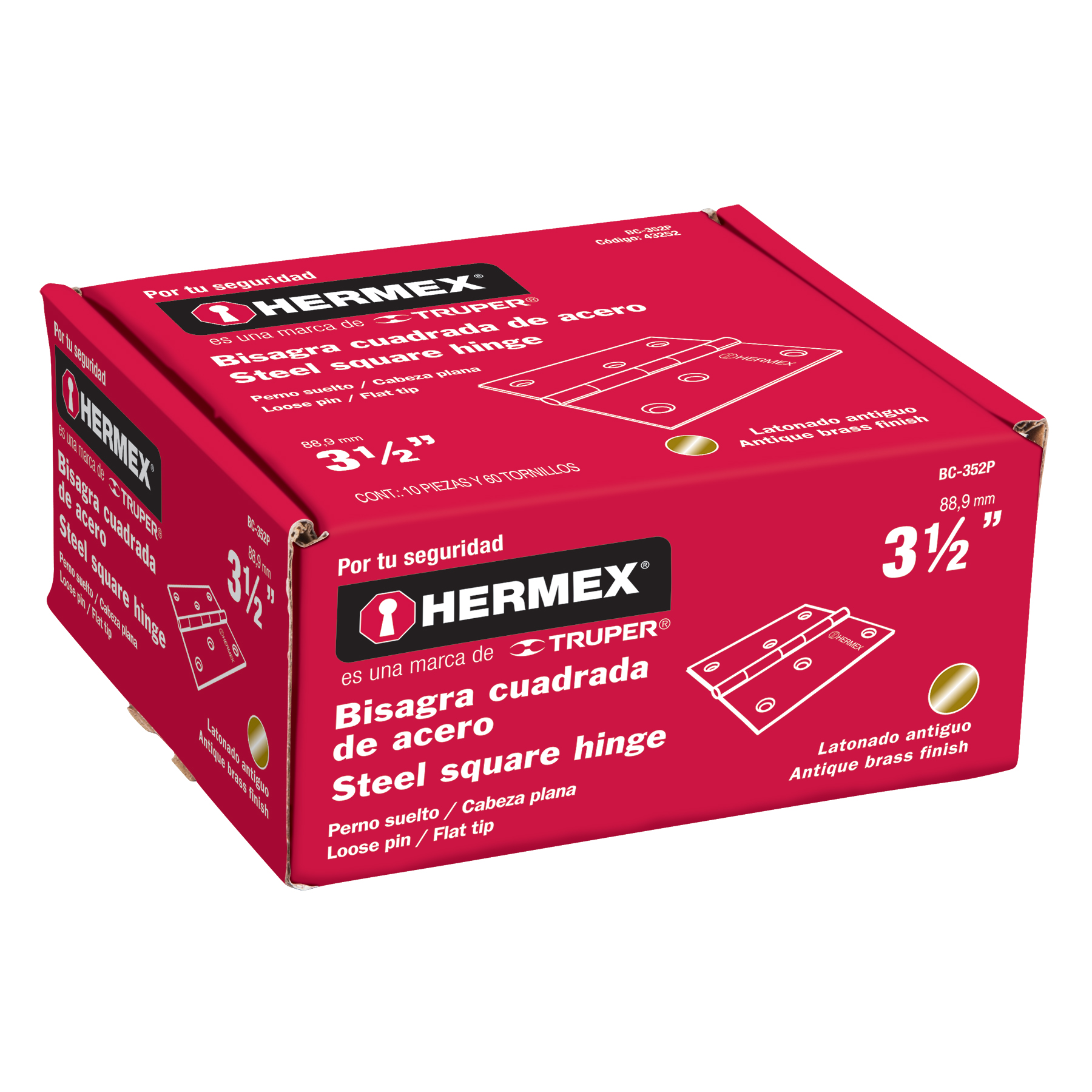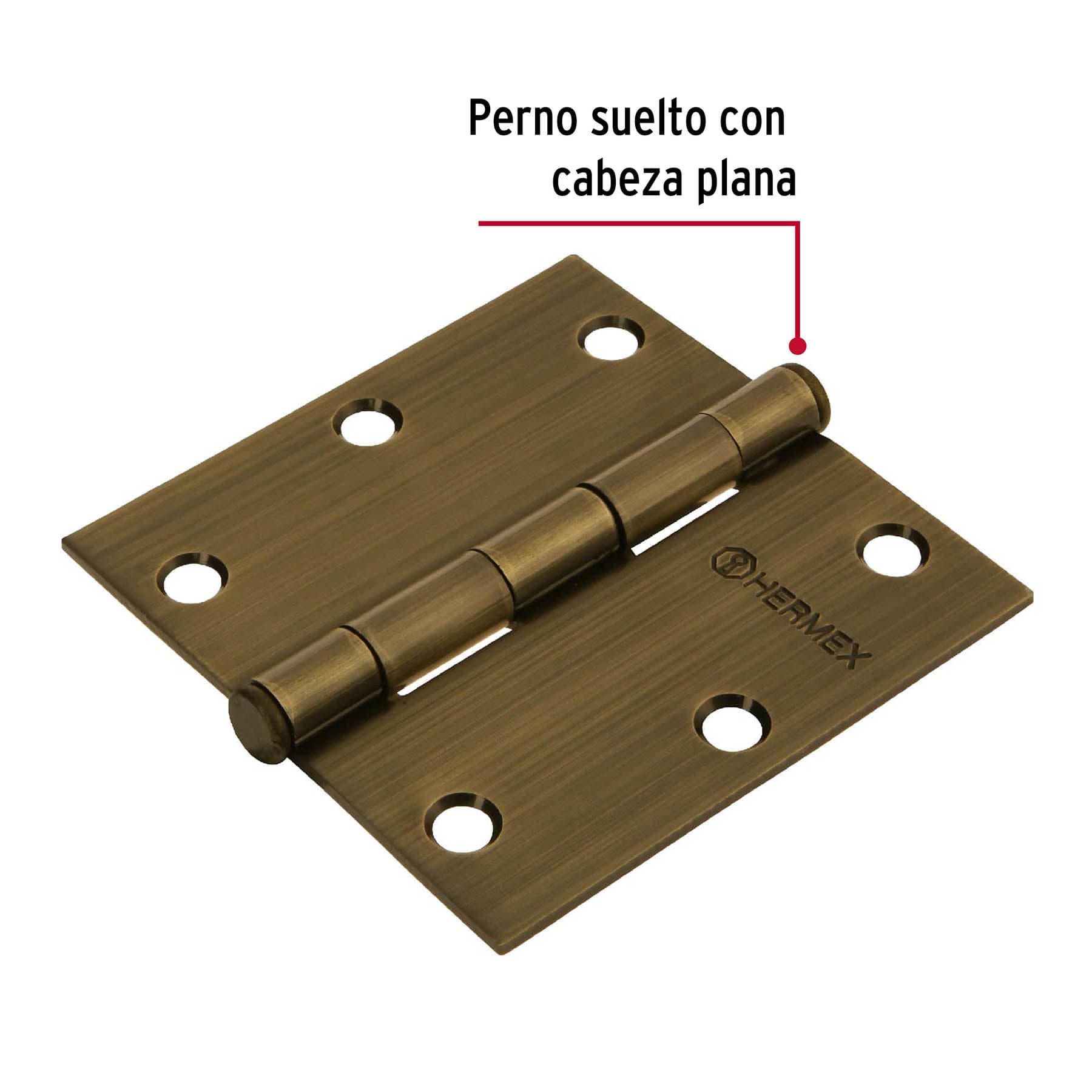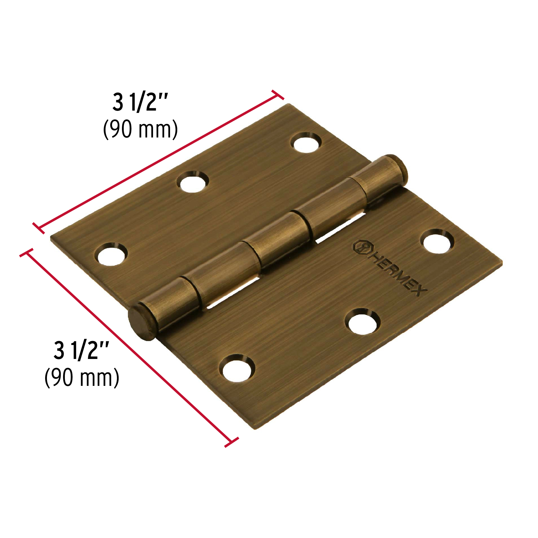 Bisagra cuadrada 3-1/2′, latón antiguo, cabeza plana, HERMEX