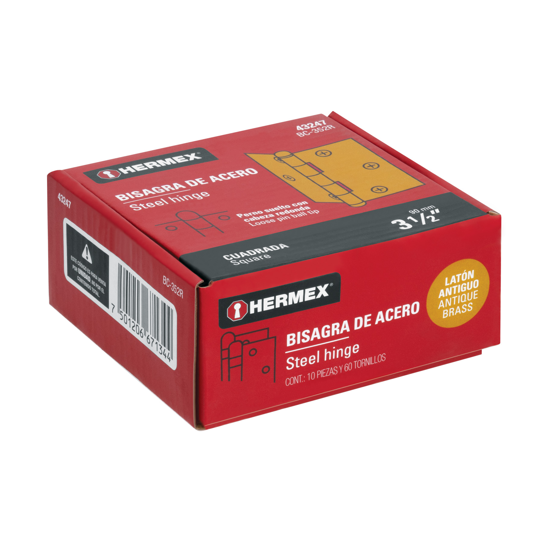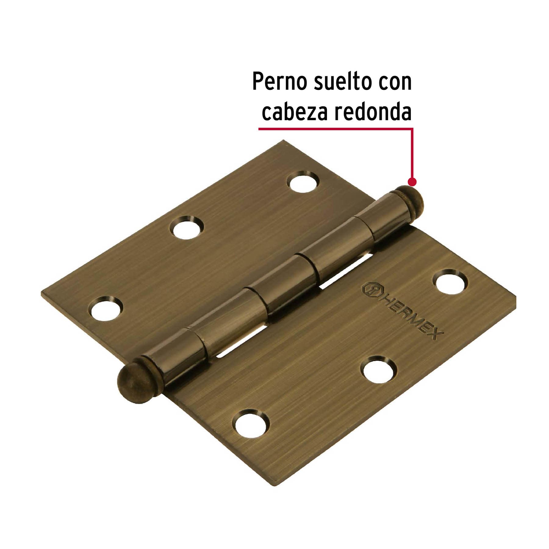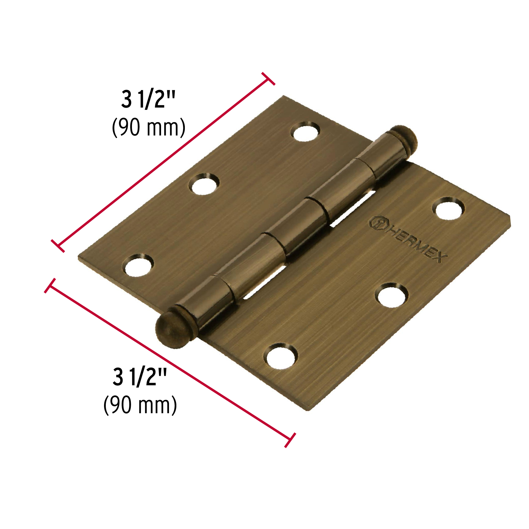 Bisagra cuadrada 3-1/2′, latón antiguo, cabeza redonda