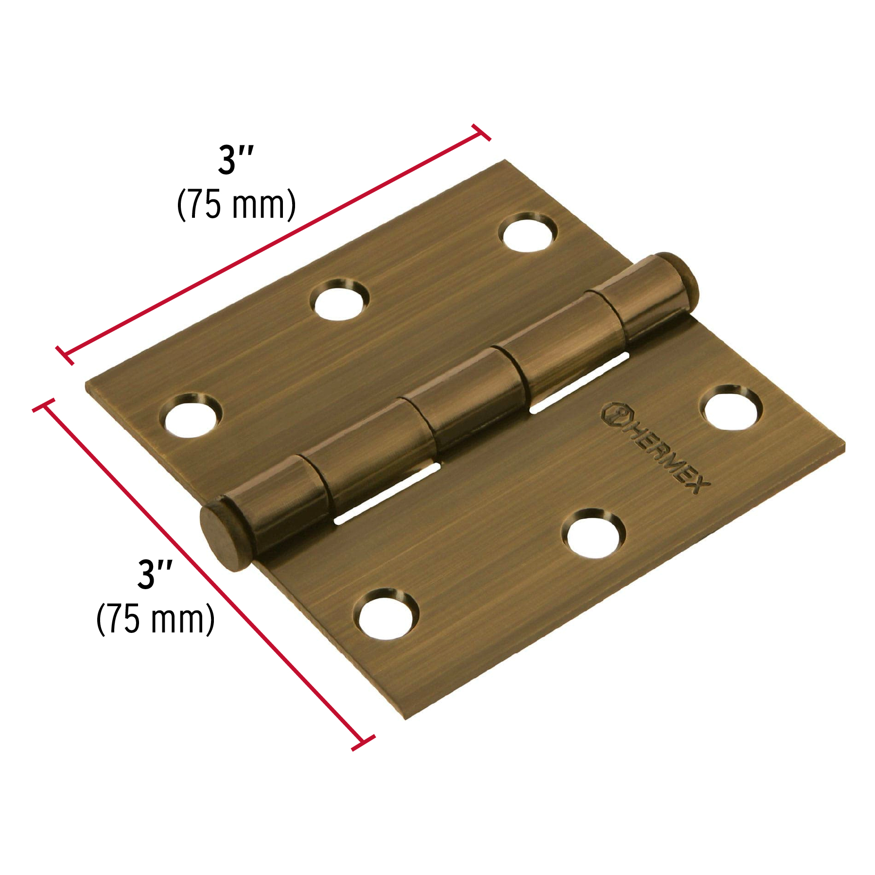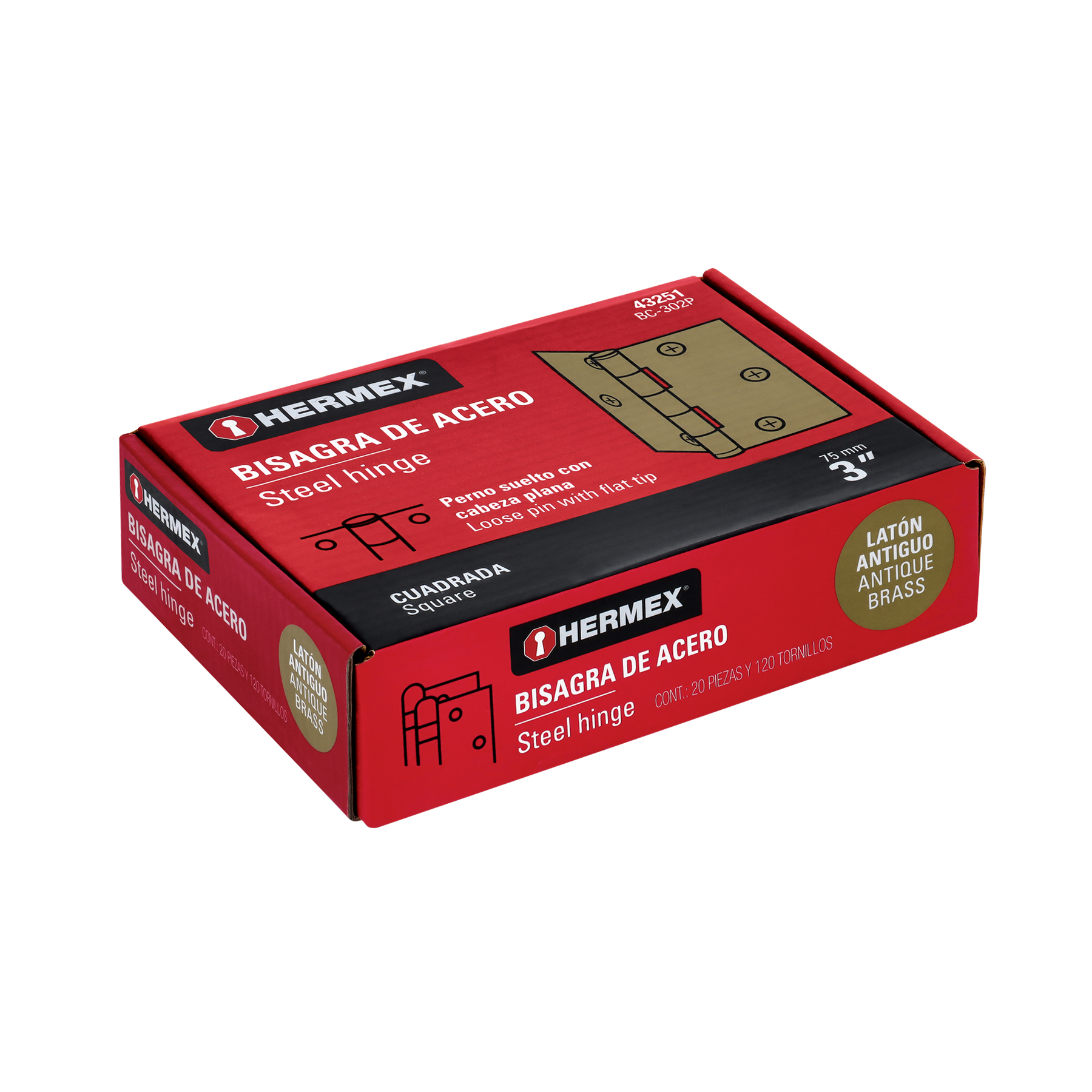 Bisagra cuadrada 3′, latón antiguo, cabeza plana, HERMEX