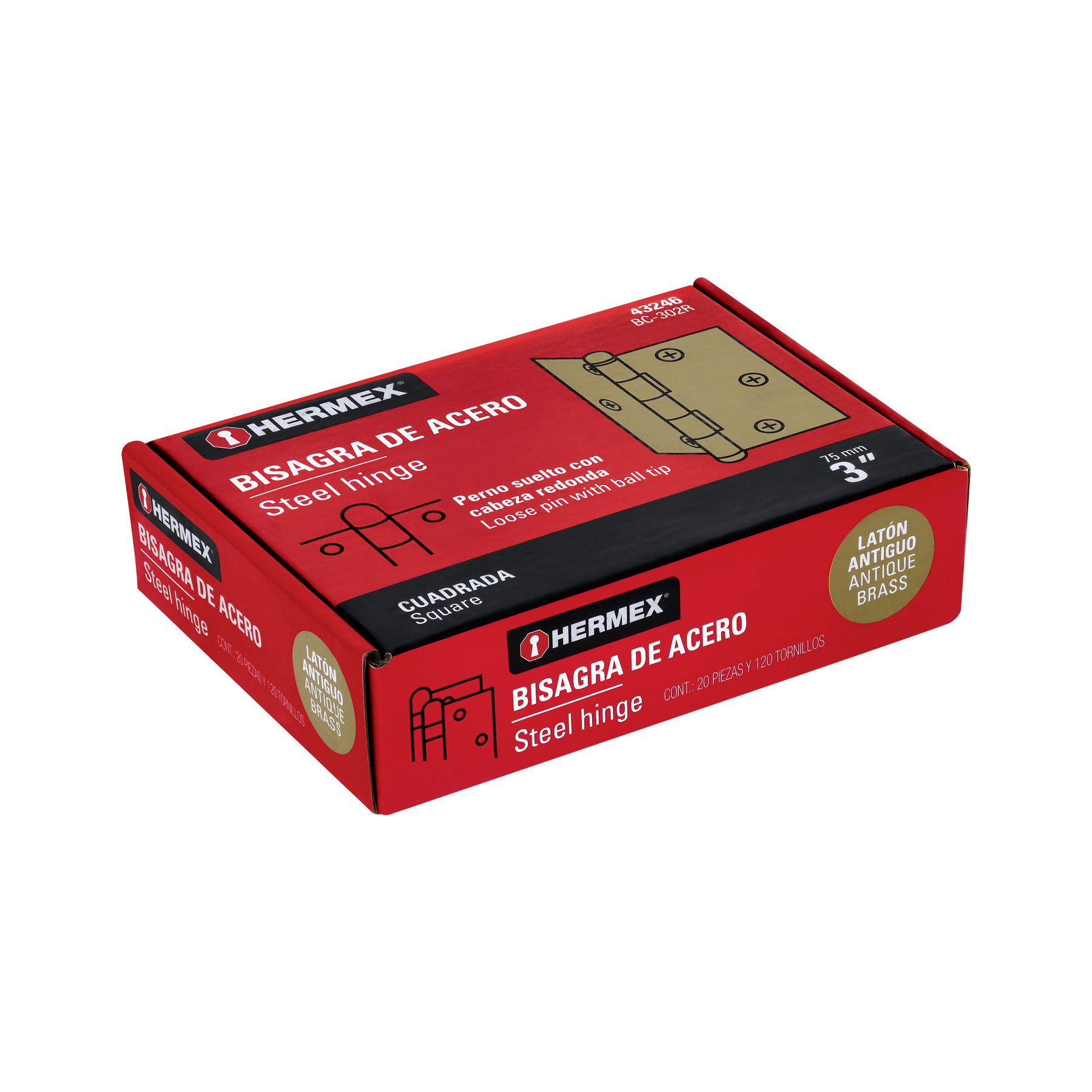 Bisagra cuadrada 3′, latón antiguo, cabeza redonda, HERMEX