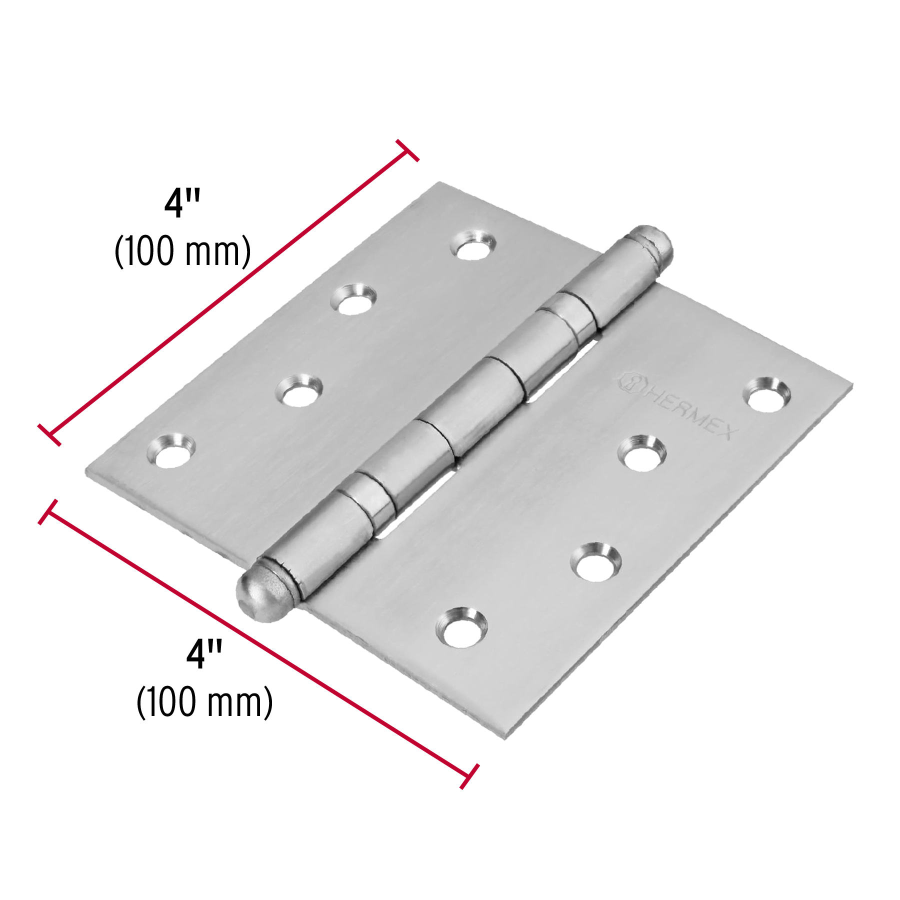 Bisagra cuadrada 4′ acero inox, cabeza redonda, HERMEX