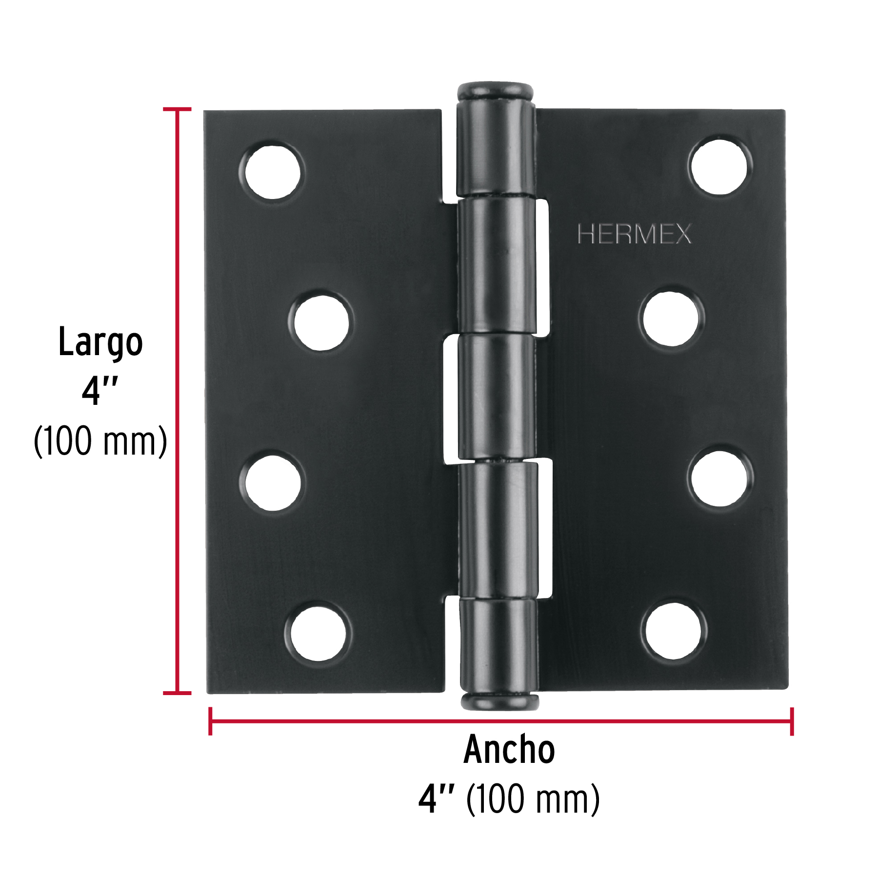 Bisagra cuadrada 4′, negro mate, cabeza plana, HERMEX