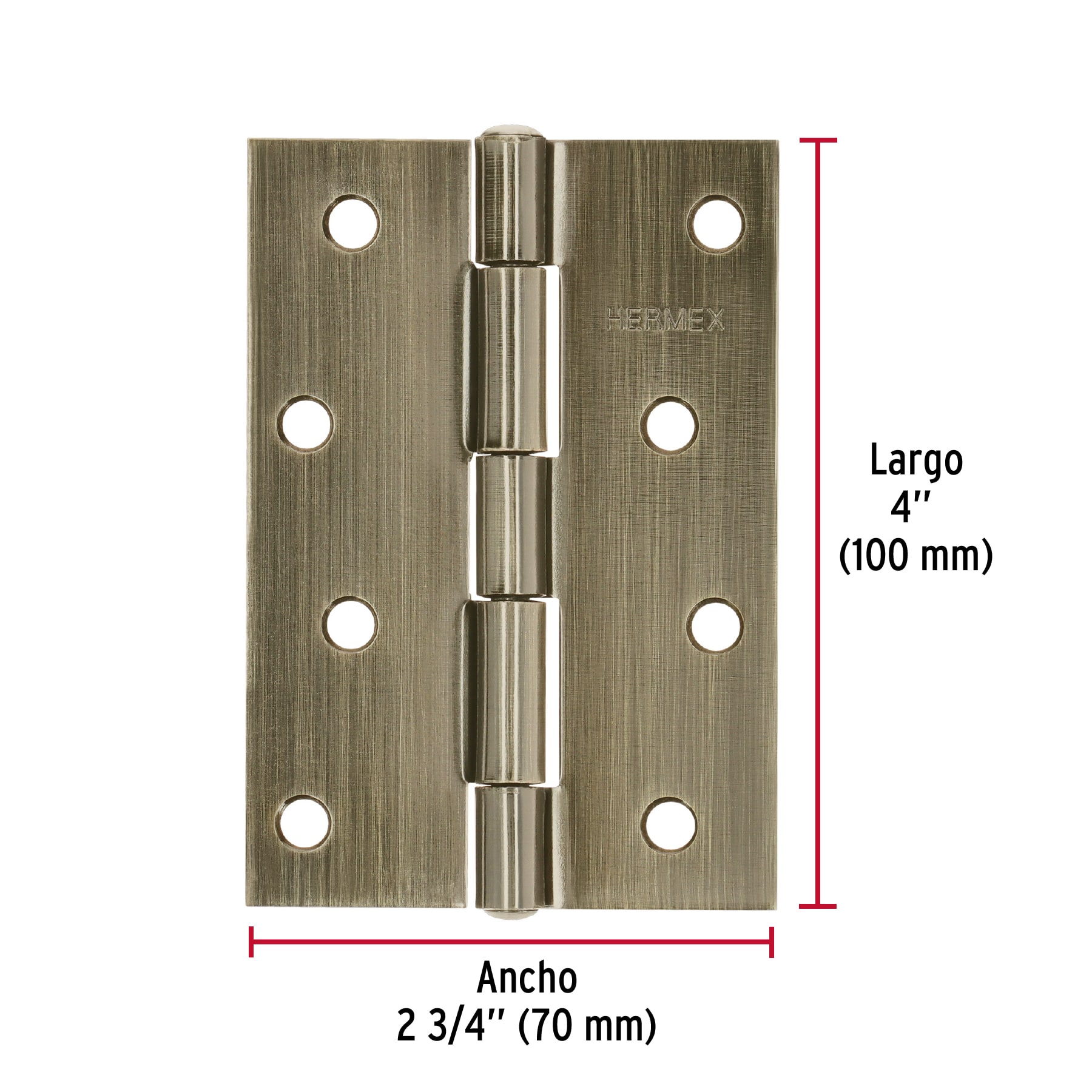 Bisagra rectangular 4′ latón antiguo, HERMEX