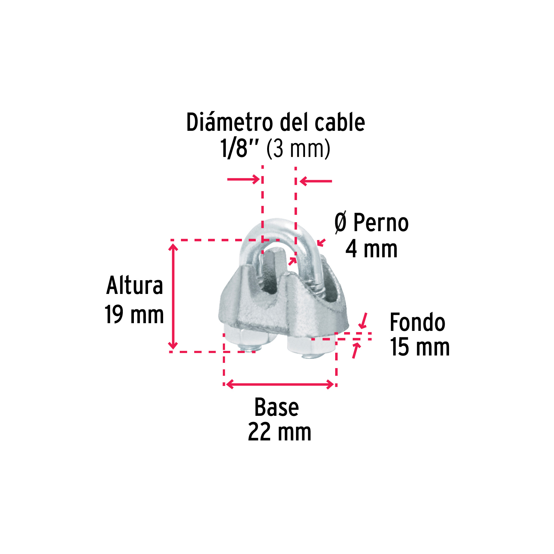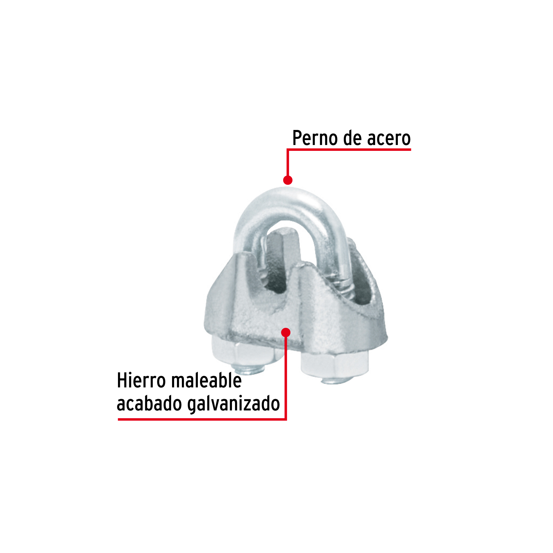 Blíster c/2 nudos (perros) de hierro p/cable de 1/8′, FIERO