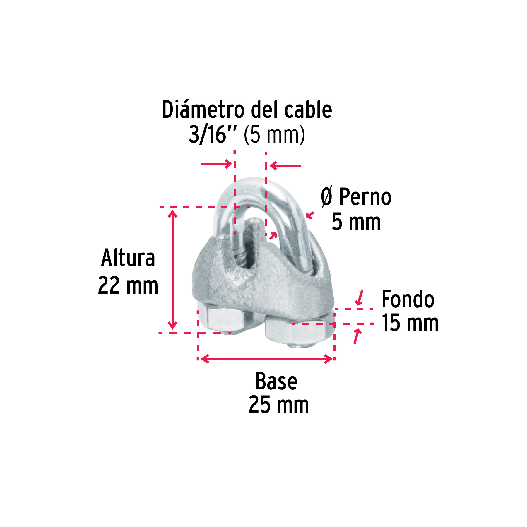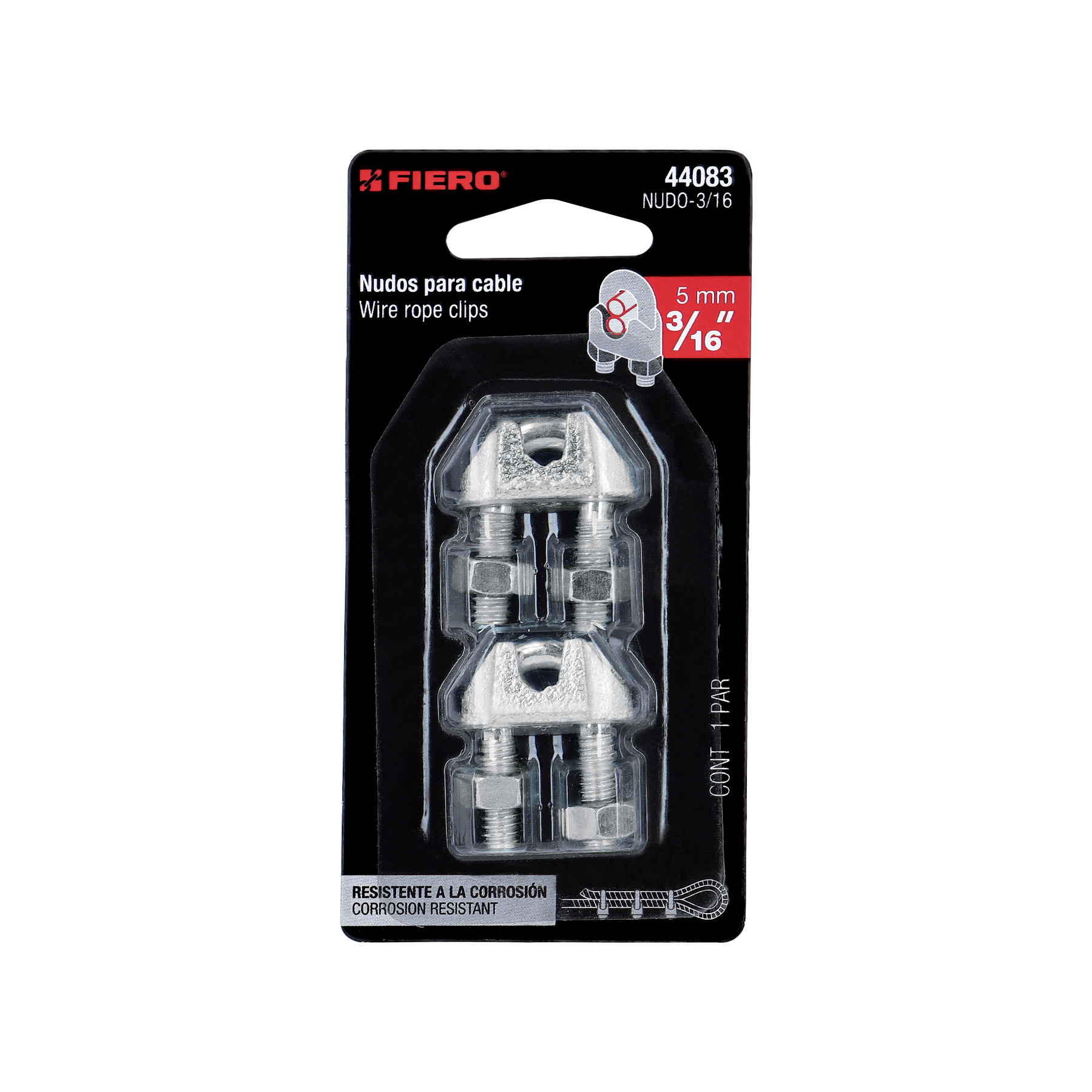 Blíster c/2 nudos (perros) de hierro p/cable de 3/16′, FIERO
