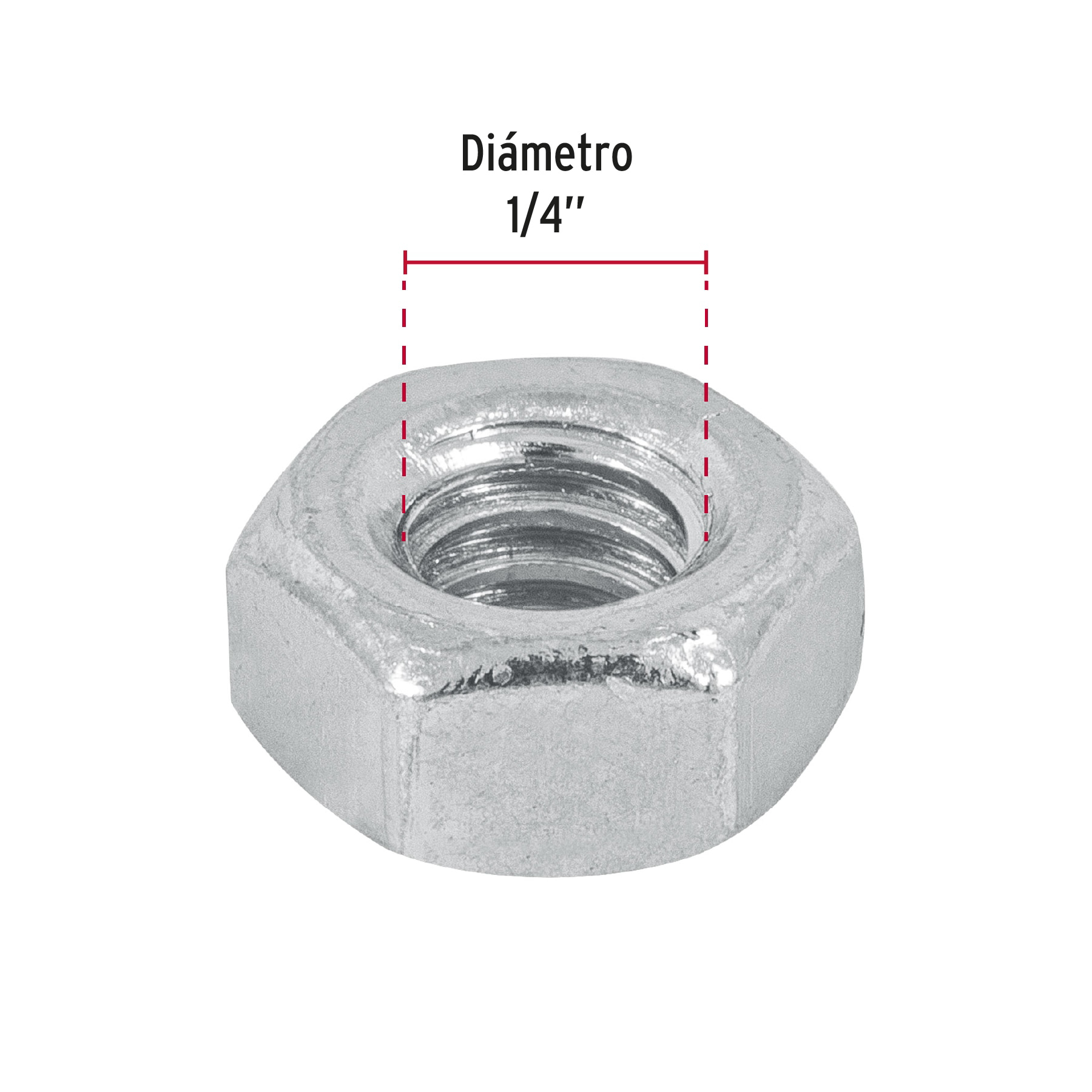 Blíster con 25 tuercas 1/4′ hex de acero galvanizado, FIERO