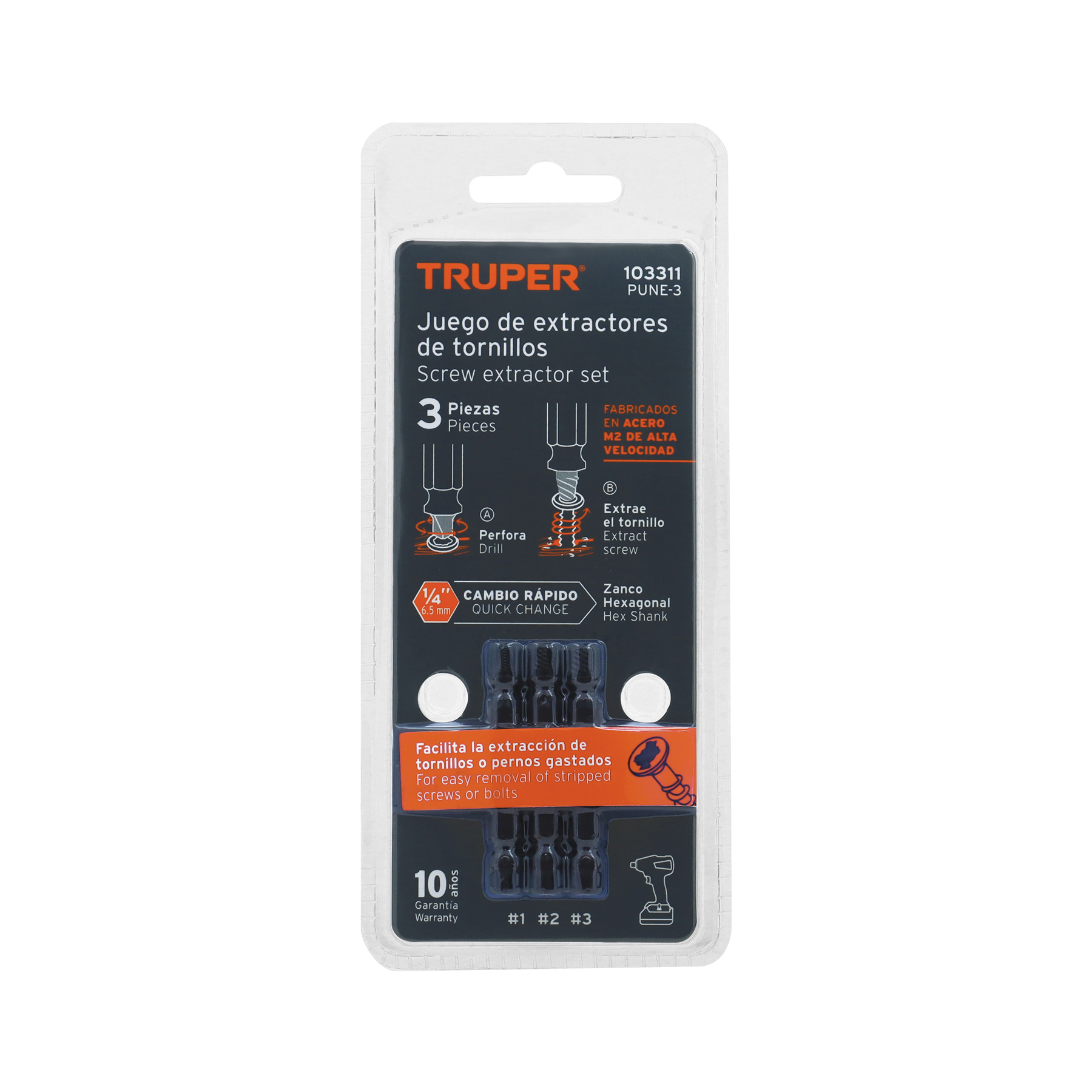 Blíster con 3 puntas extractoras de tornillos, Truper