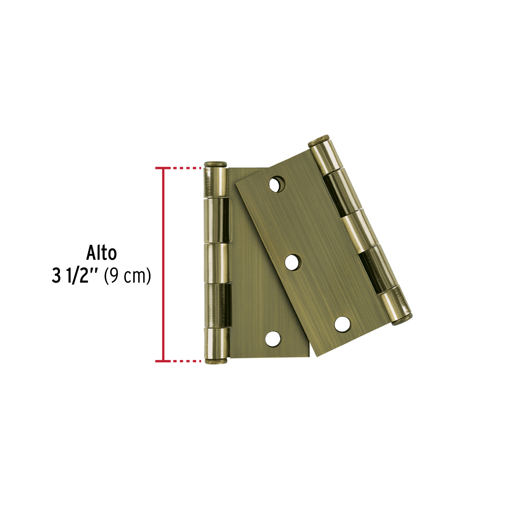 Bolsa c/2 bisagras cuadradas 3-1/2′, plana, latón ant,HERMEX