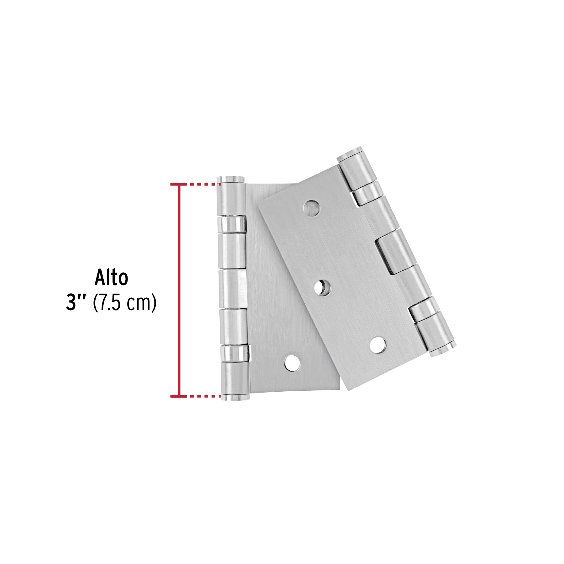 Bolsa c/2 bisagras cuadradas 3′, plana, acero inox, HERMEX