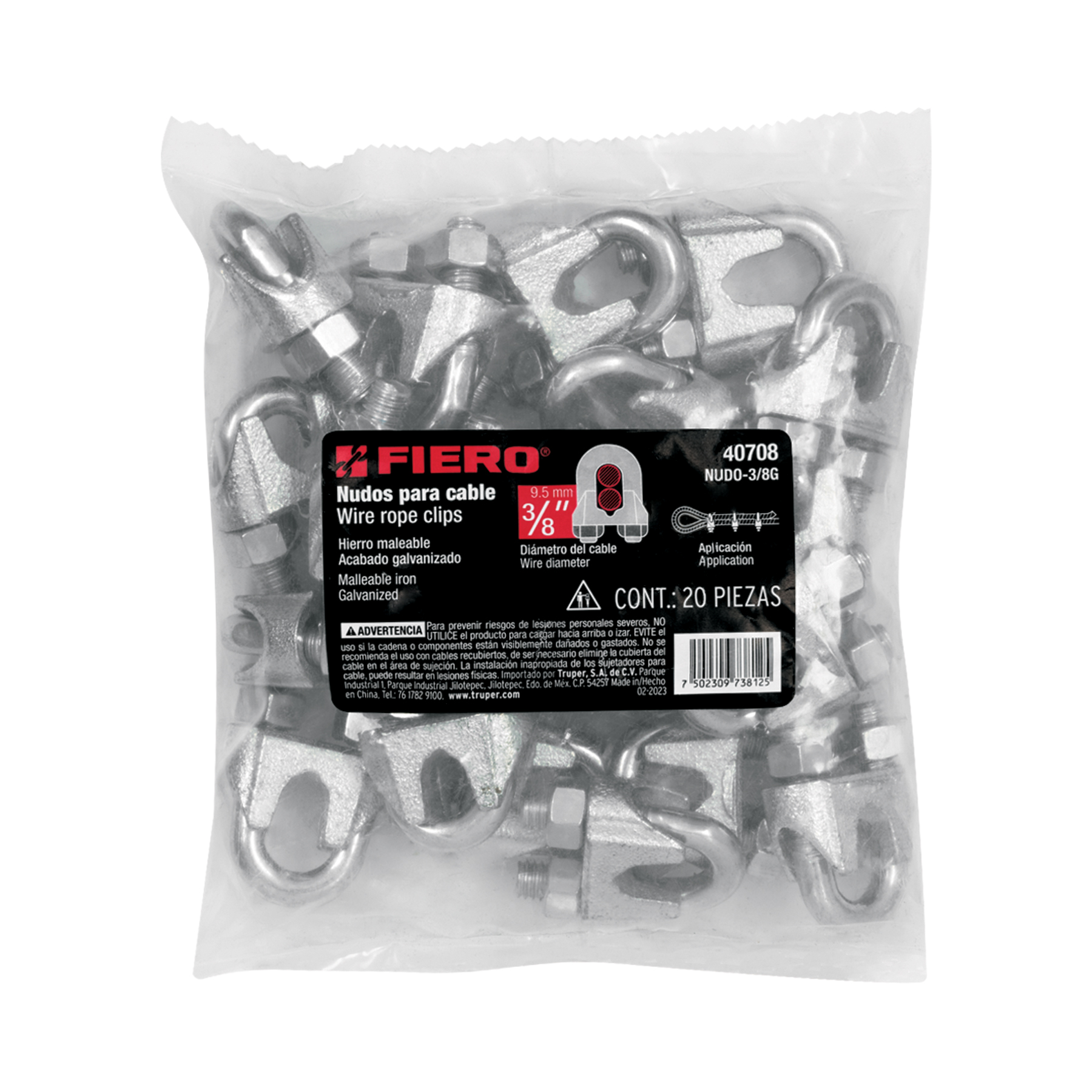 Bolsa c/20 nudos (perros) de hierro p/cable de 3/8′, FIERO