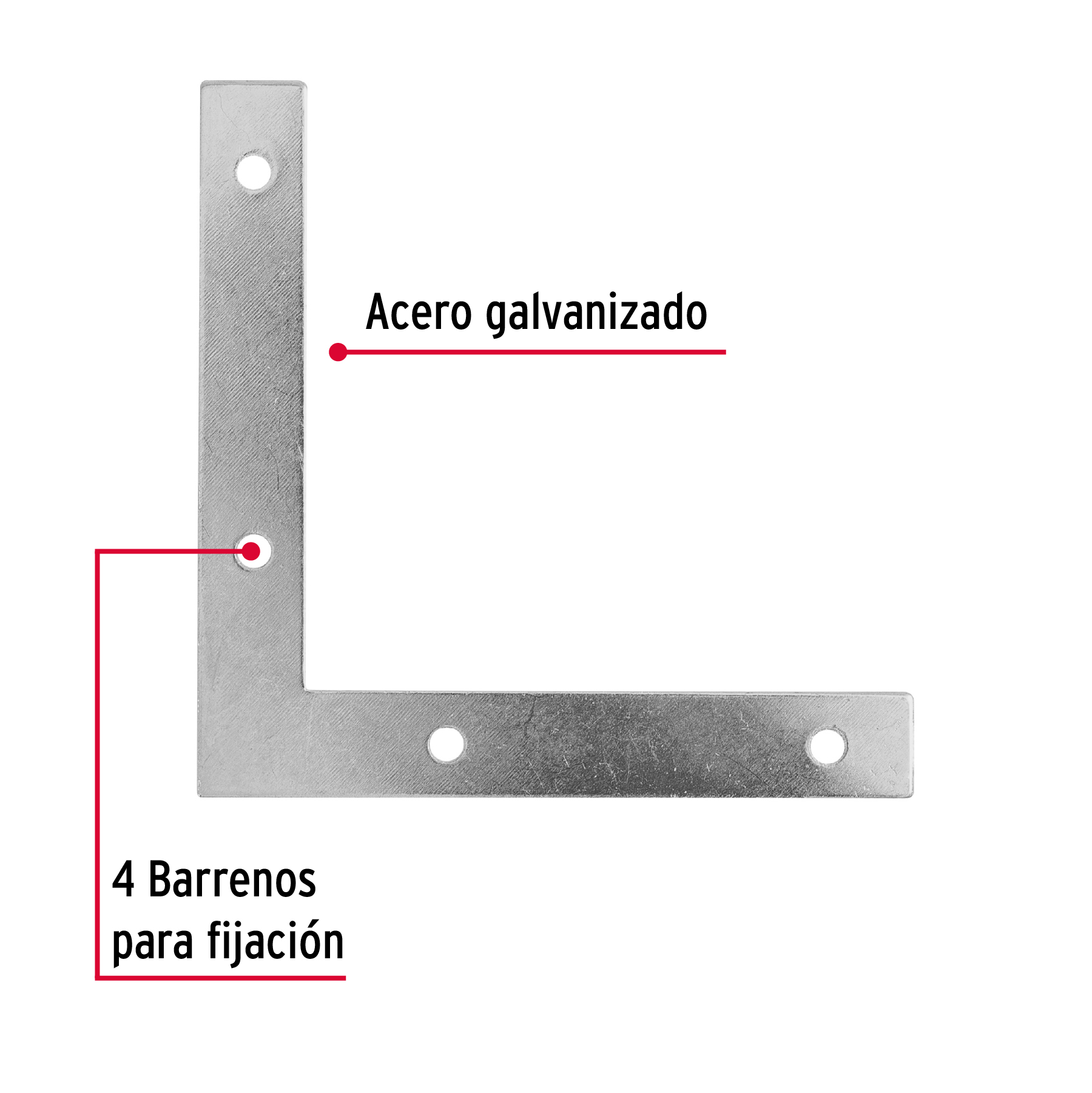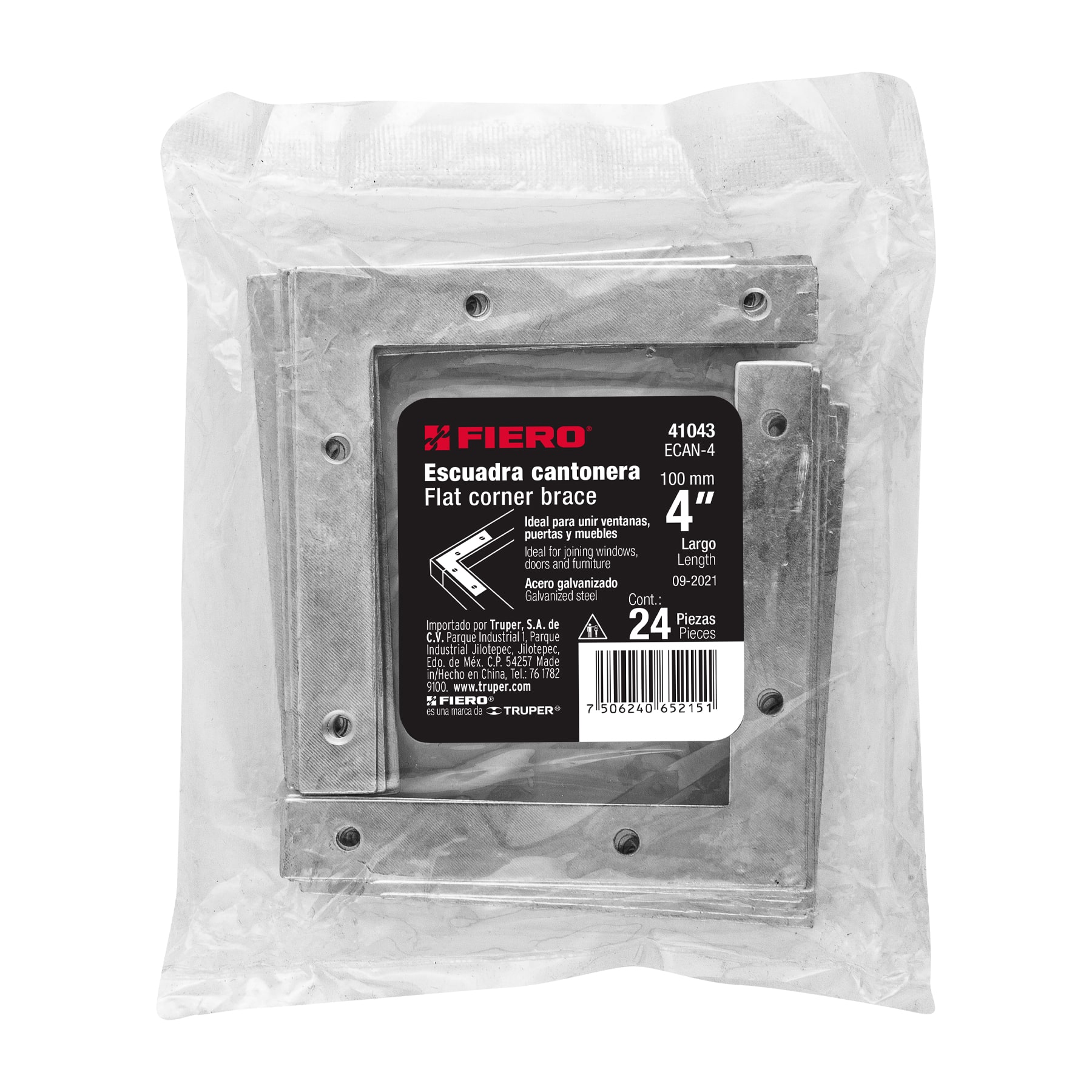 Bolsa c/24 escuadras planas cantoneras 4′ x 4′, FIERO