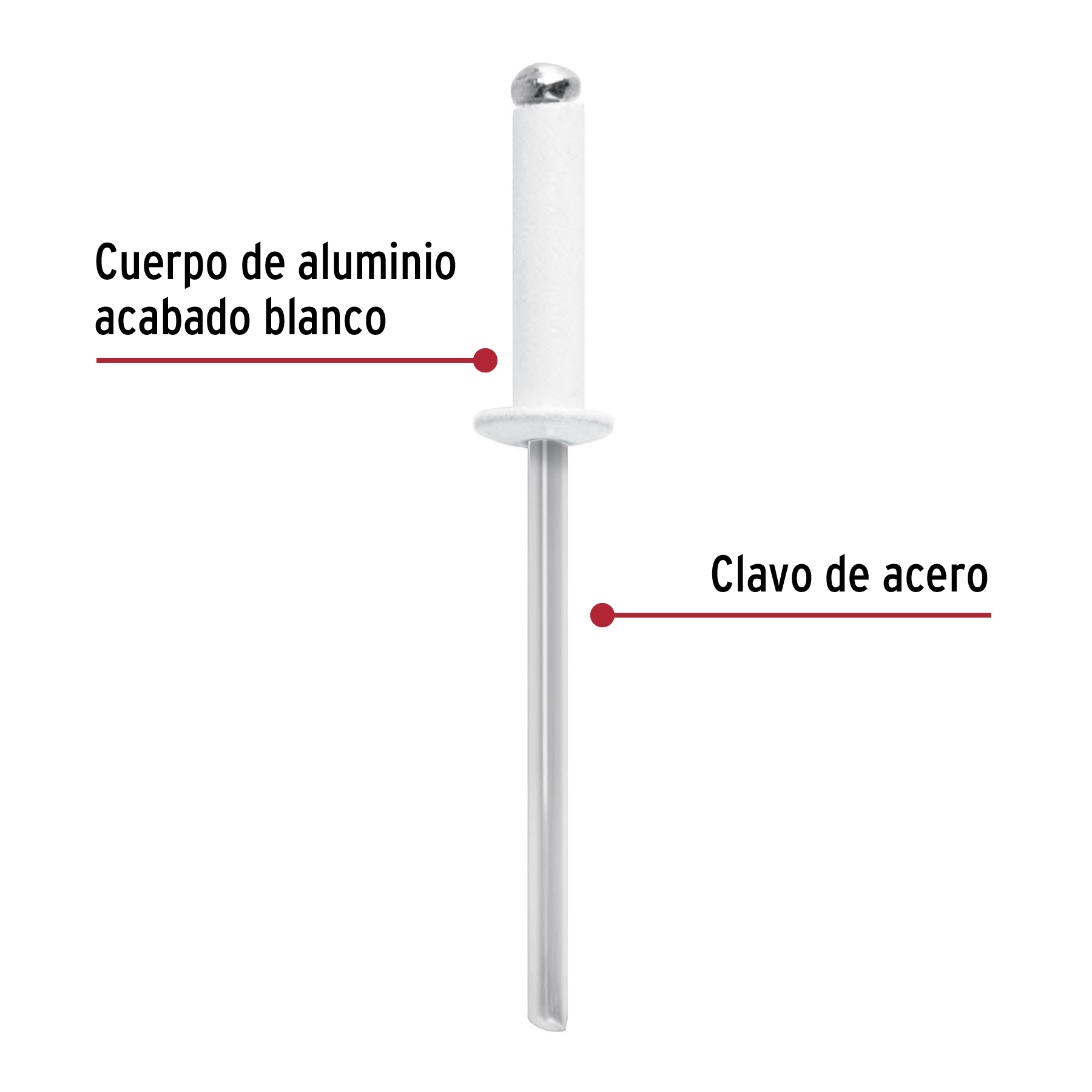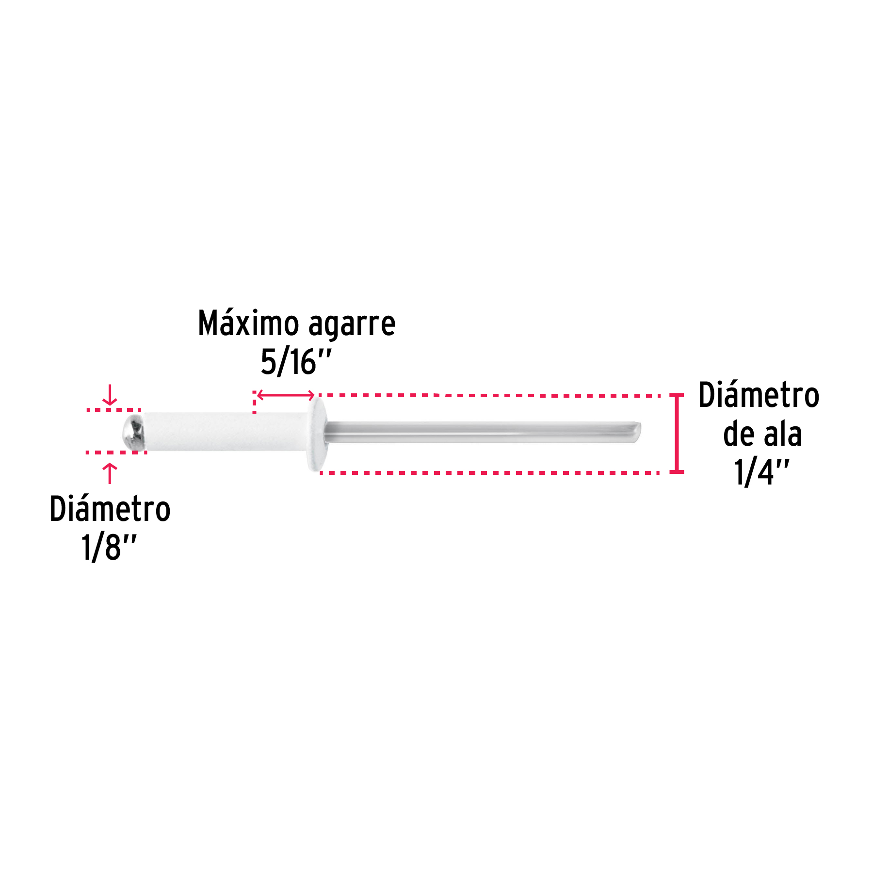 Bolsa c/50 remaches 1/8’x5/16′ blancos de aluminio, ala 1/4′