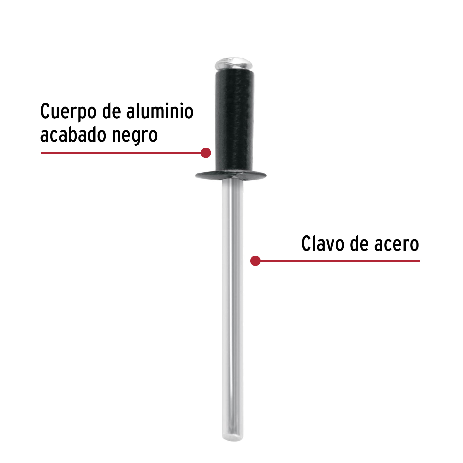Bolsa c/50 remaches 5/32’x3/8′ negros de aluminio, ala 5/16′