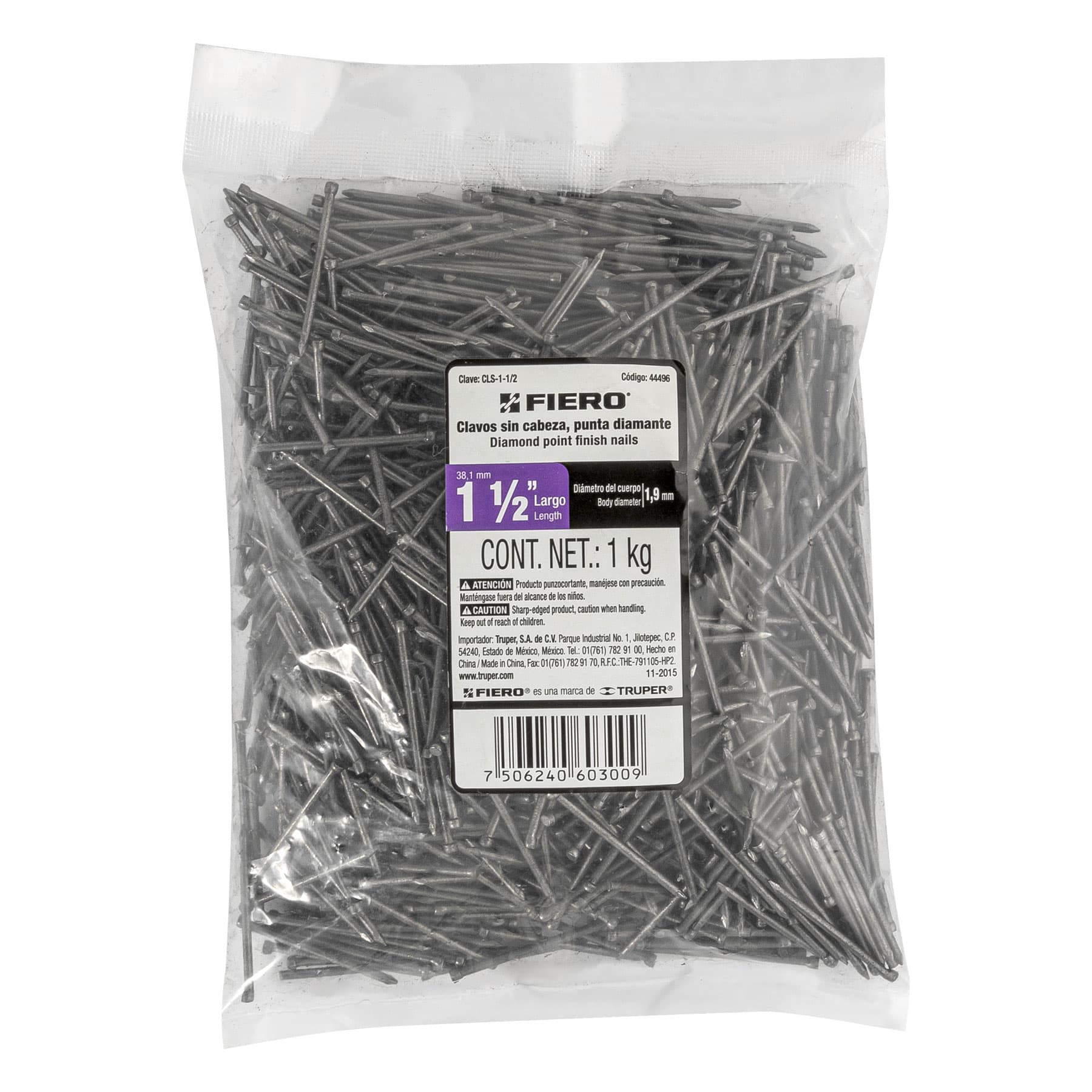 Bolsa con 1 kg de clavo estándar 1-1/2′ sin cabeza, FIERO