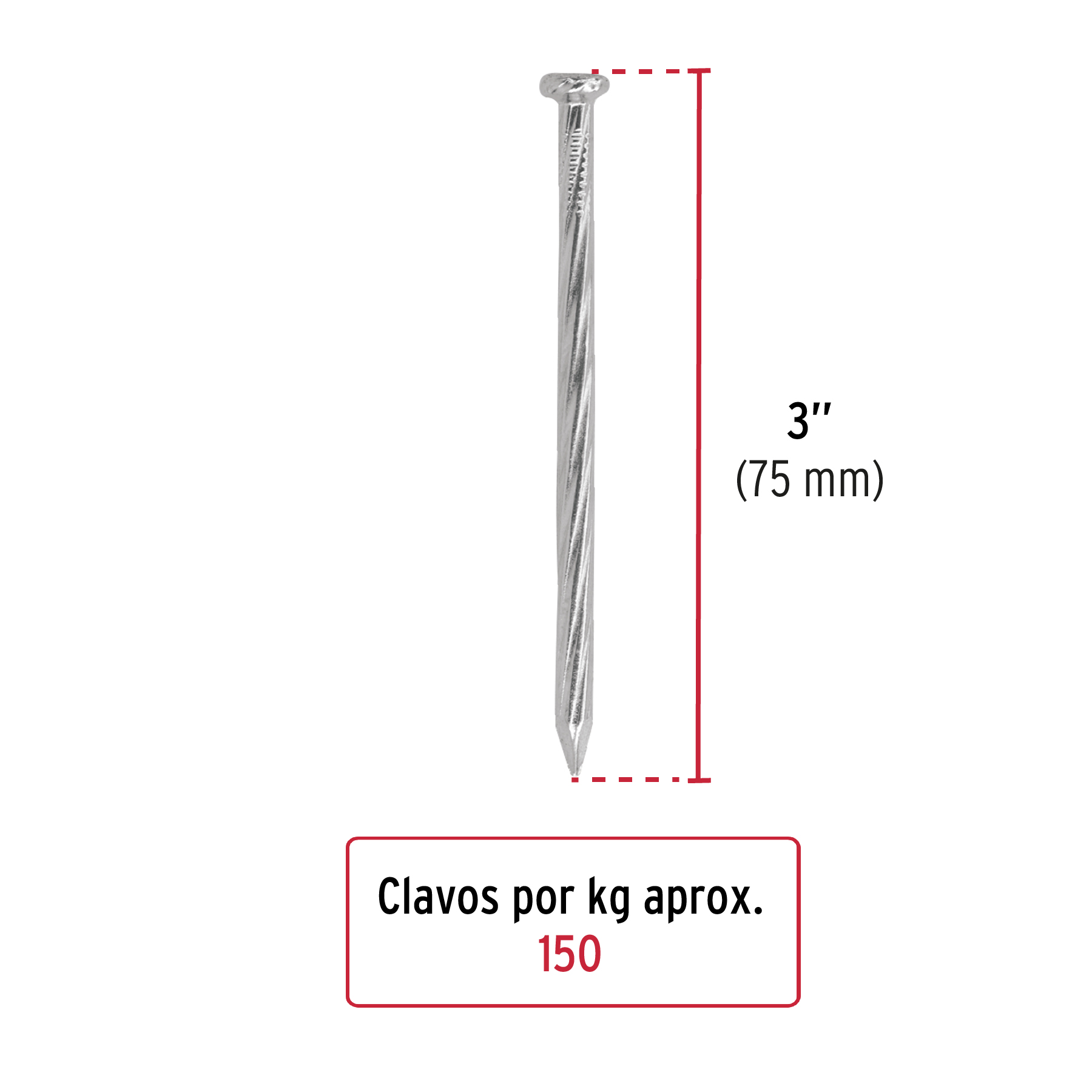 Bolsa con 1 kg de clavos para concreto galvanizados 3′