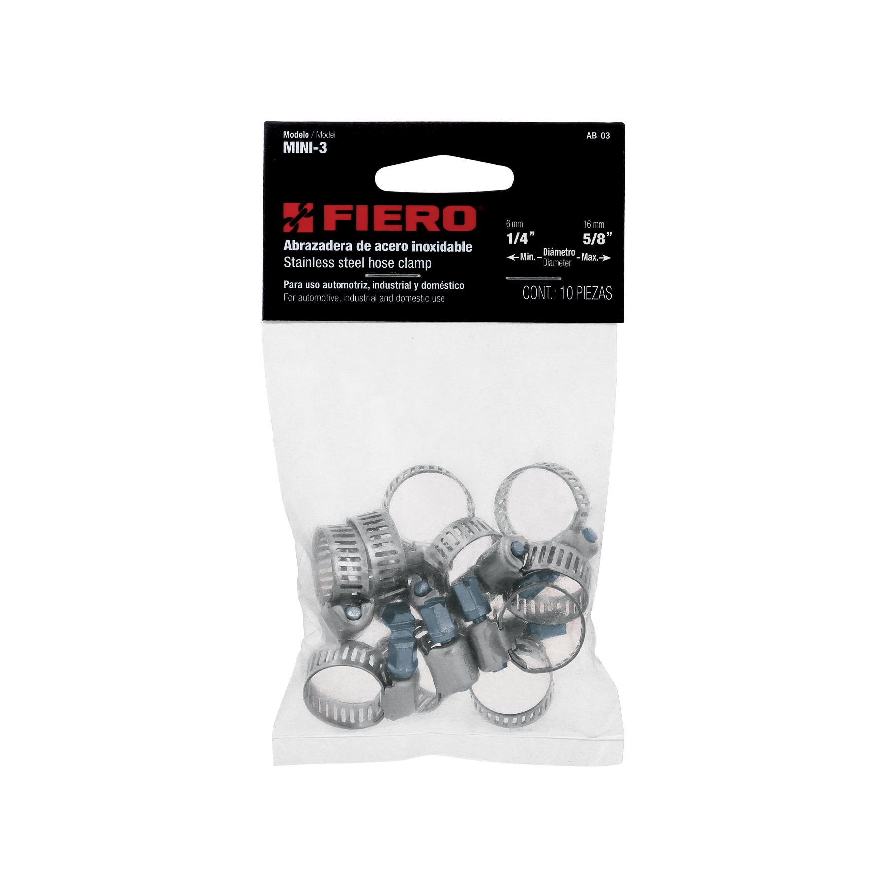 Bolsa c/10 abrazaderas mini sin fin reforzadas #3, 1/4′-5/8′