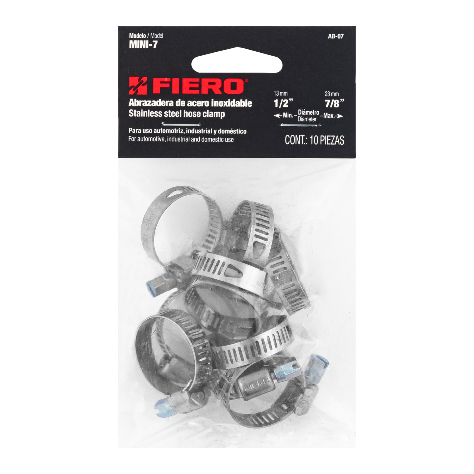 Bolsa c/10 abrazaderas mini sin fin reforzadas #7, 1/2 -7/8′