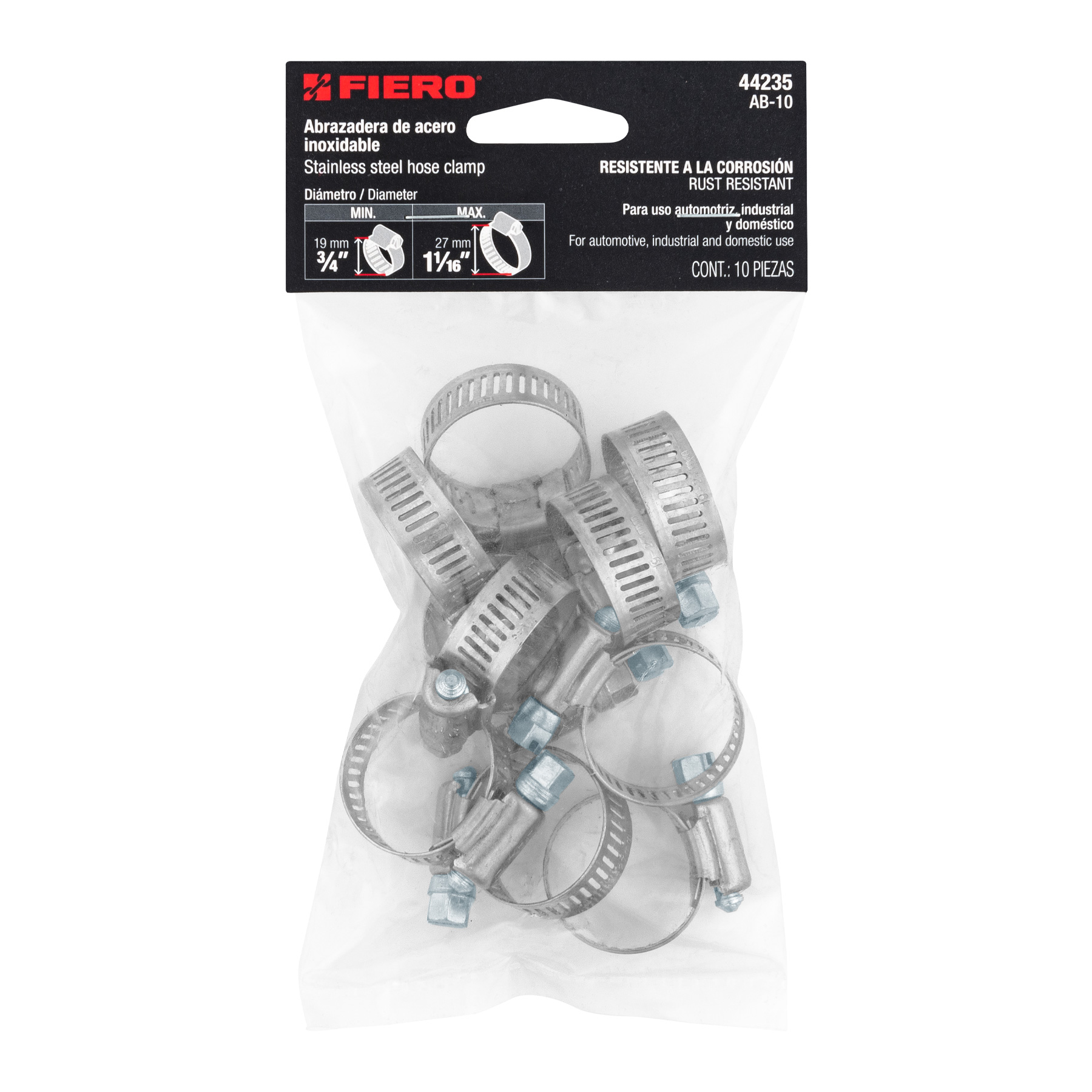 Bolsa c/10 abrazaderas sin fin reforzadas #10, 3/4 – 1-1/16′