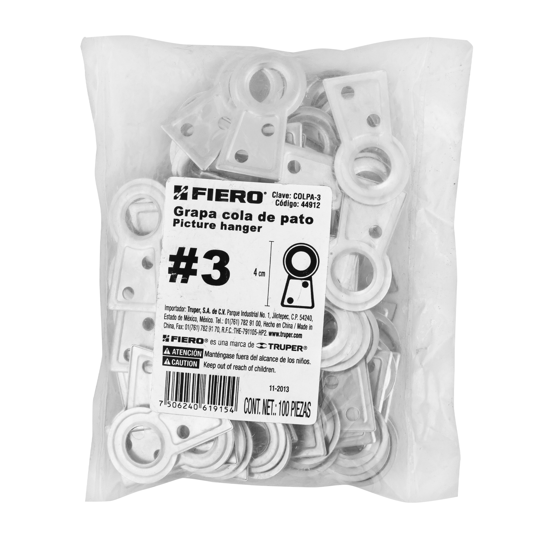Bolsa con 100 colas de pato #3, 4 cm altura, 11.2 mm ojillo