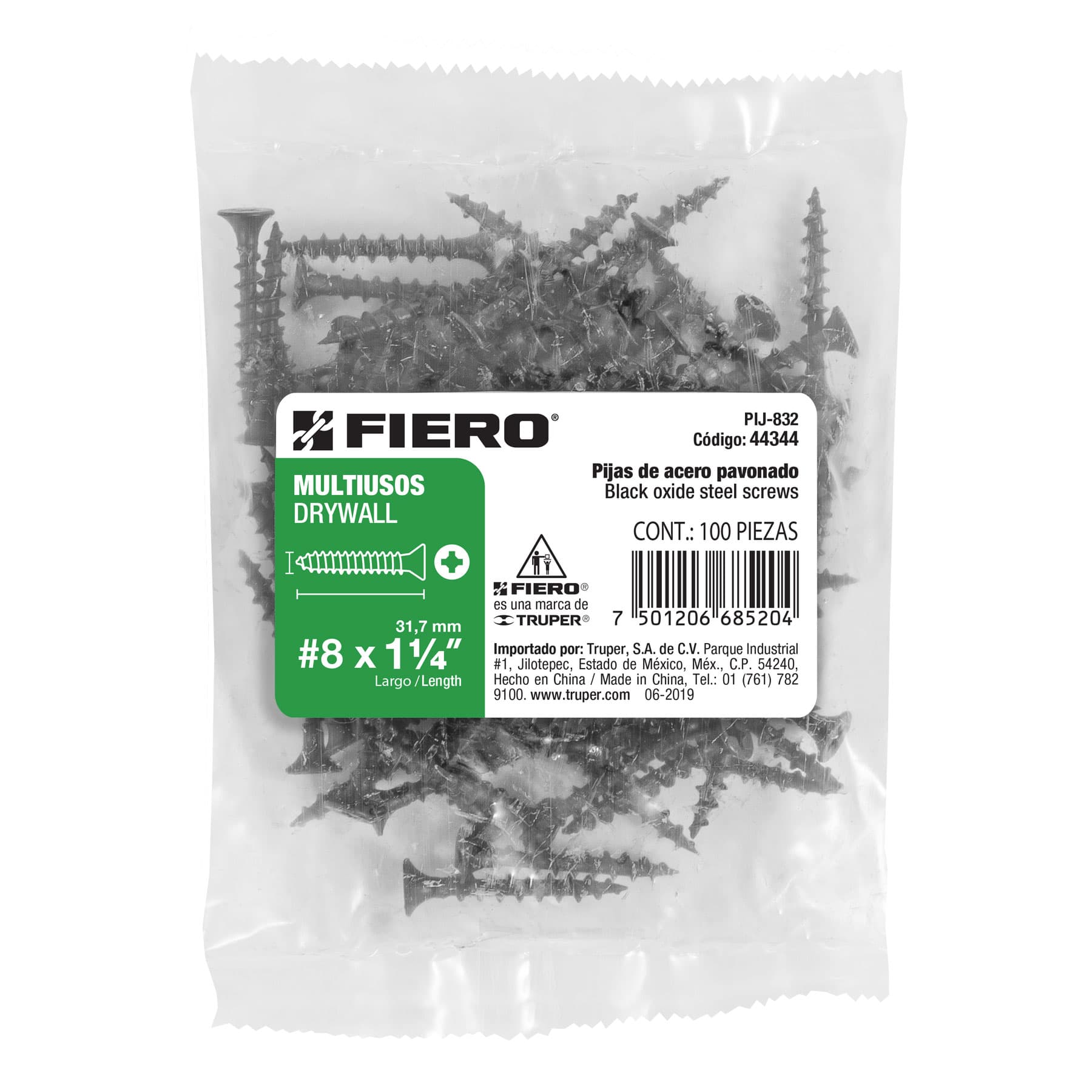 Bolsa con 100 pijas #8 x 1-1/4′ multiusos, FIERO