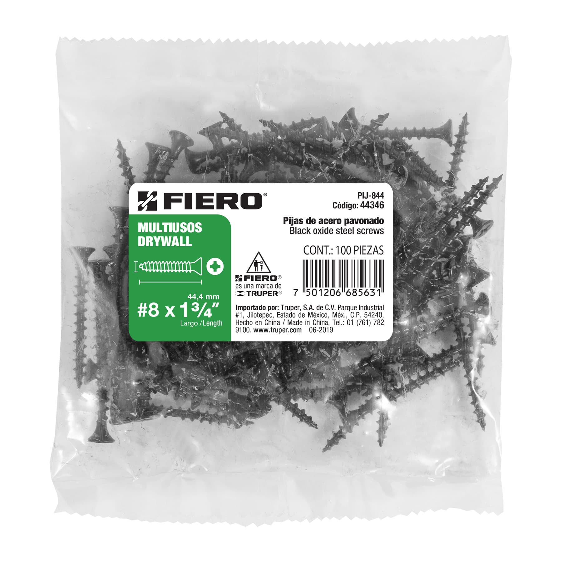 Bolsa con 100 pijas #8 x 1-3/4′ multiusos, FIERO