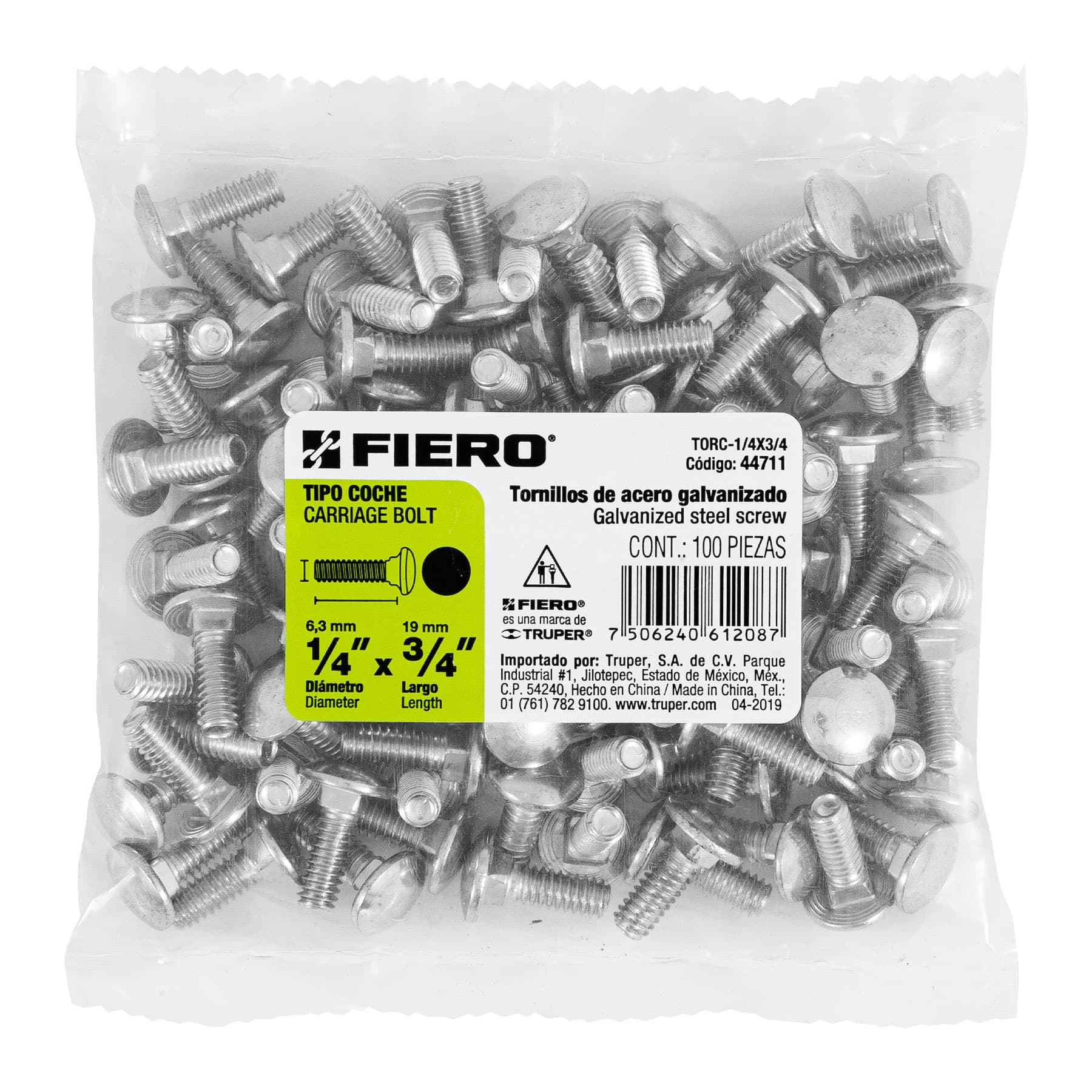 Bolsa con 100 tornillos 1/4′ x 3/4′ tipo coche, FIERO