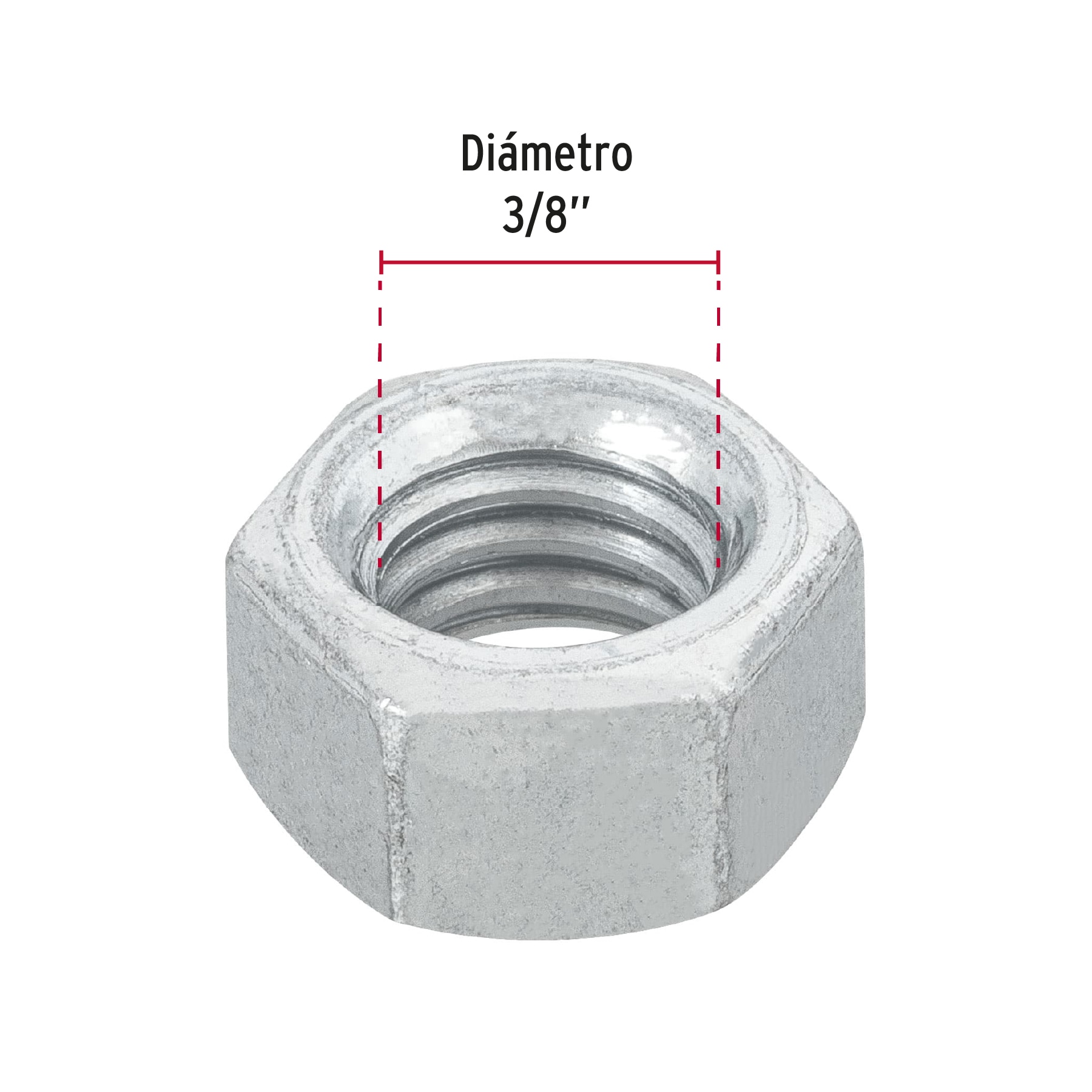 Bolsa con 100 tuercas 3/8′ hexagonales de acero galvanizado