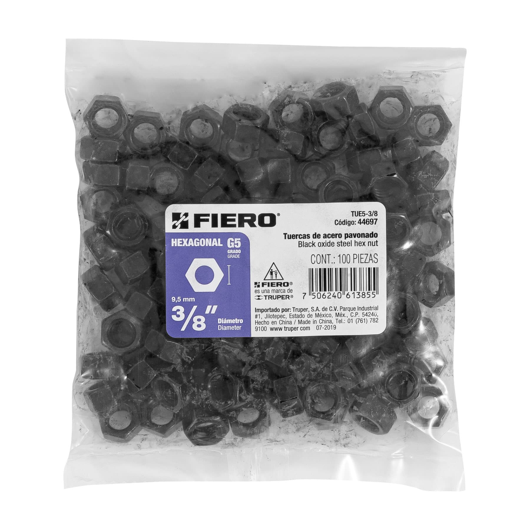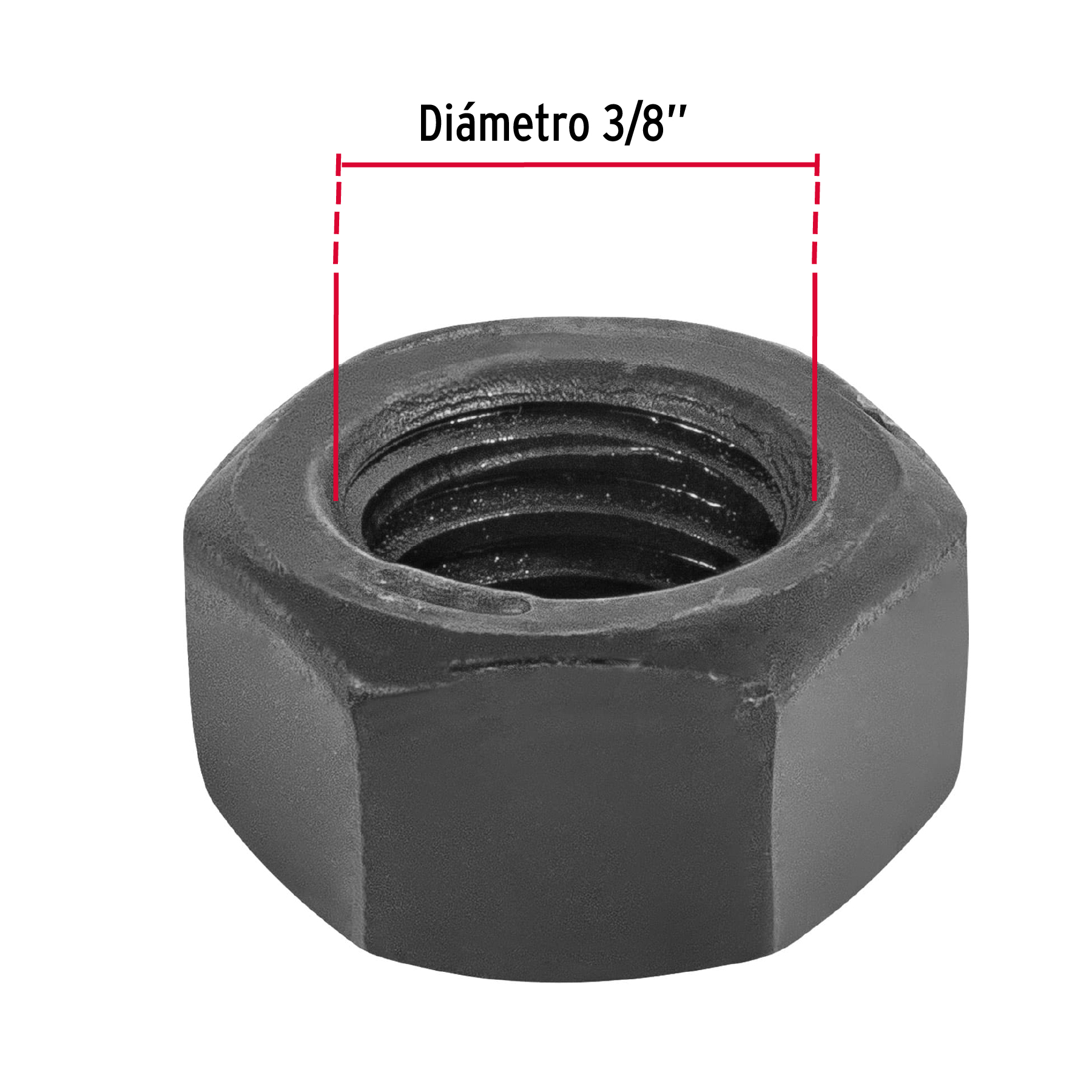 Bolsa con 100 tuercas 3/8′ hexagonales pavonadas, grado 5